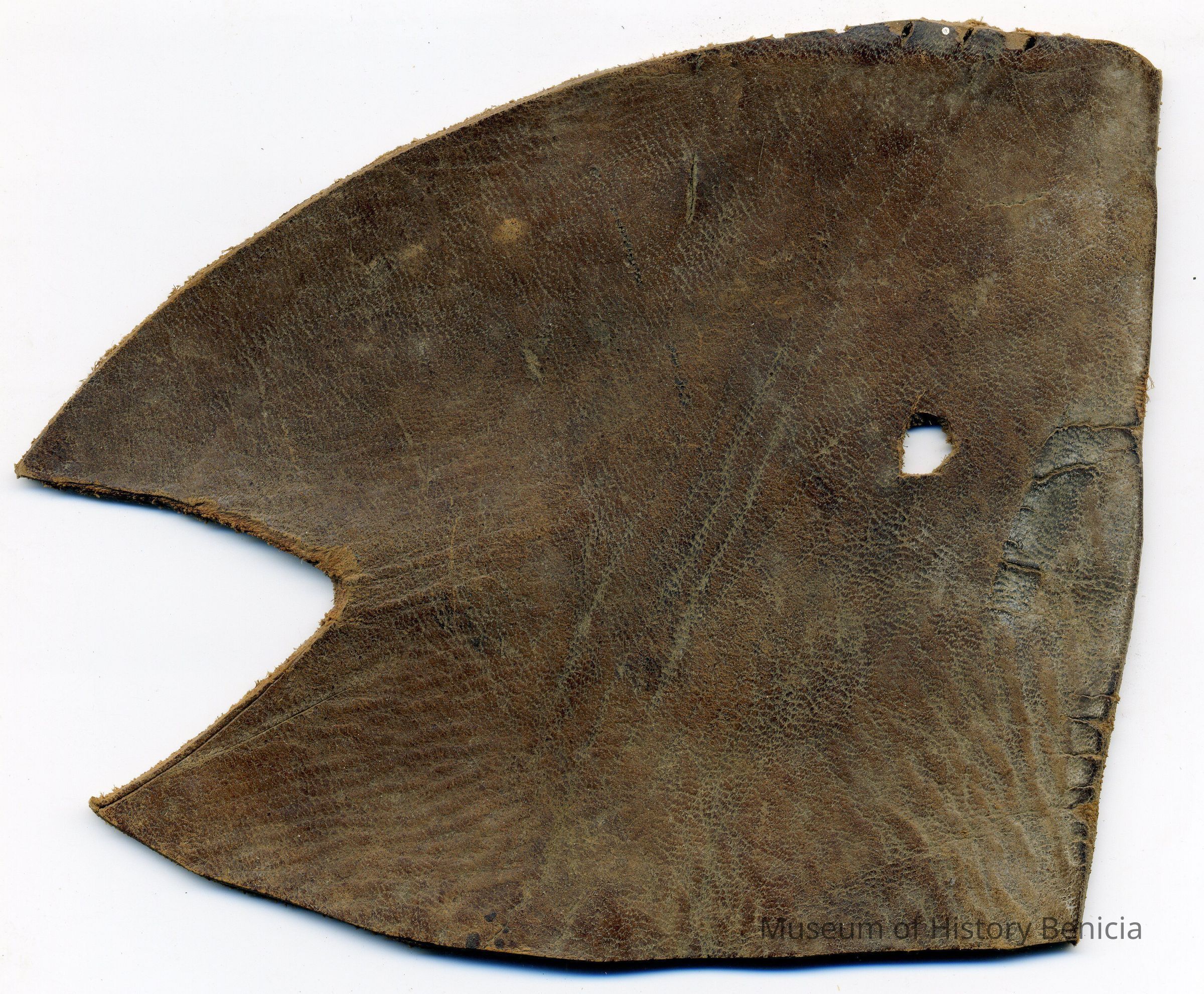 Sample earmarking on a piece of leather for an unknown individual, registration date is unknown because no information is written in a Ledger of the Solano County Recorder 1855-1916.