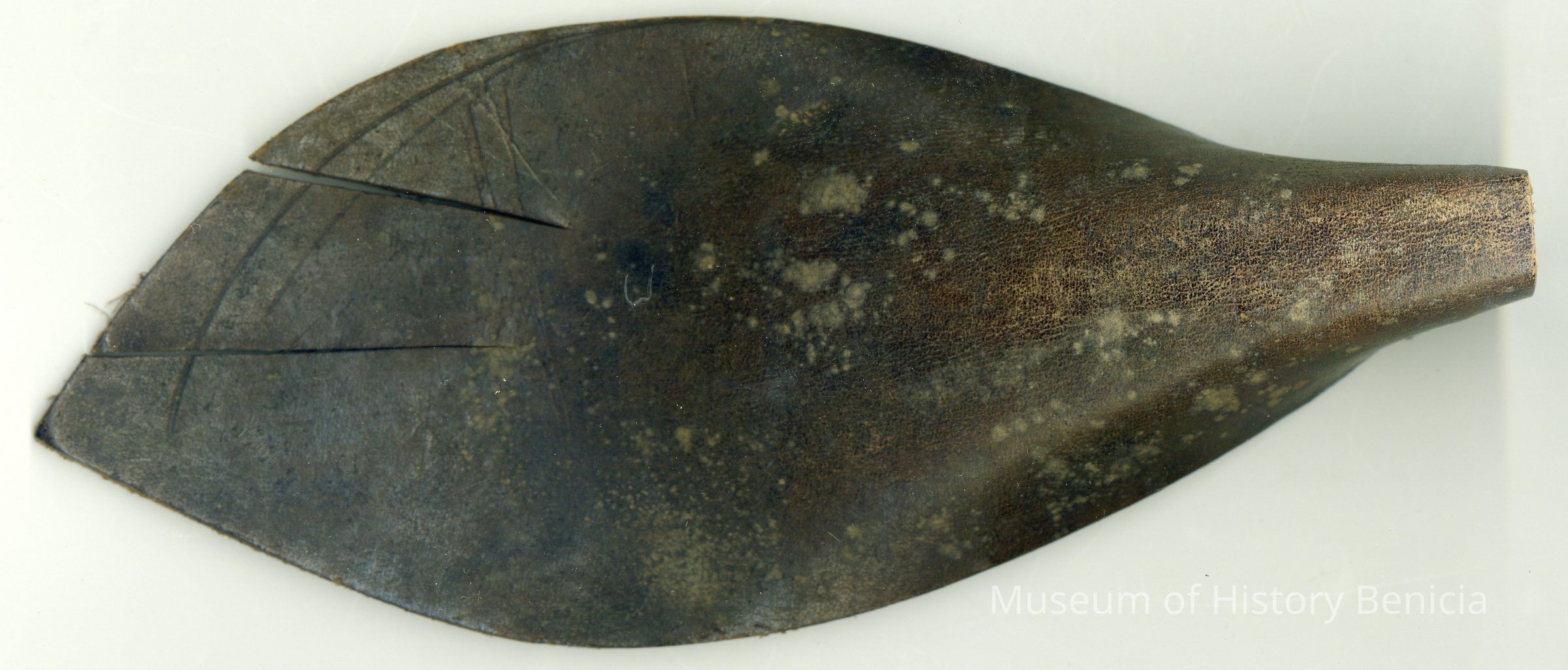 No copy of the original recording is adhered to the back of the piece. There seems to be some writing on the back but it is illegible. This piece may belong to the same individual as 1986.10.236 because of the way it is put together and the type of leather used.Collection