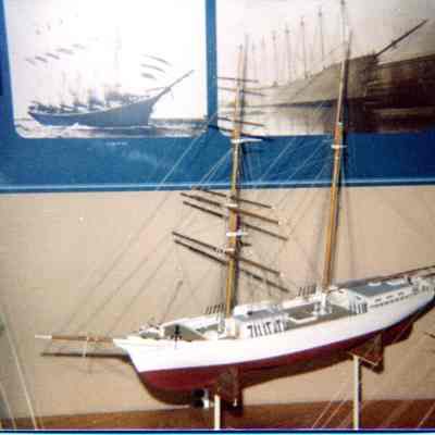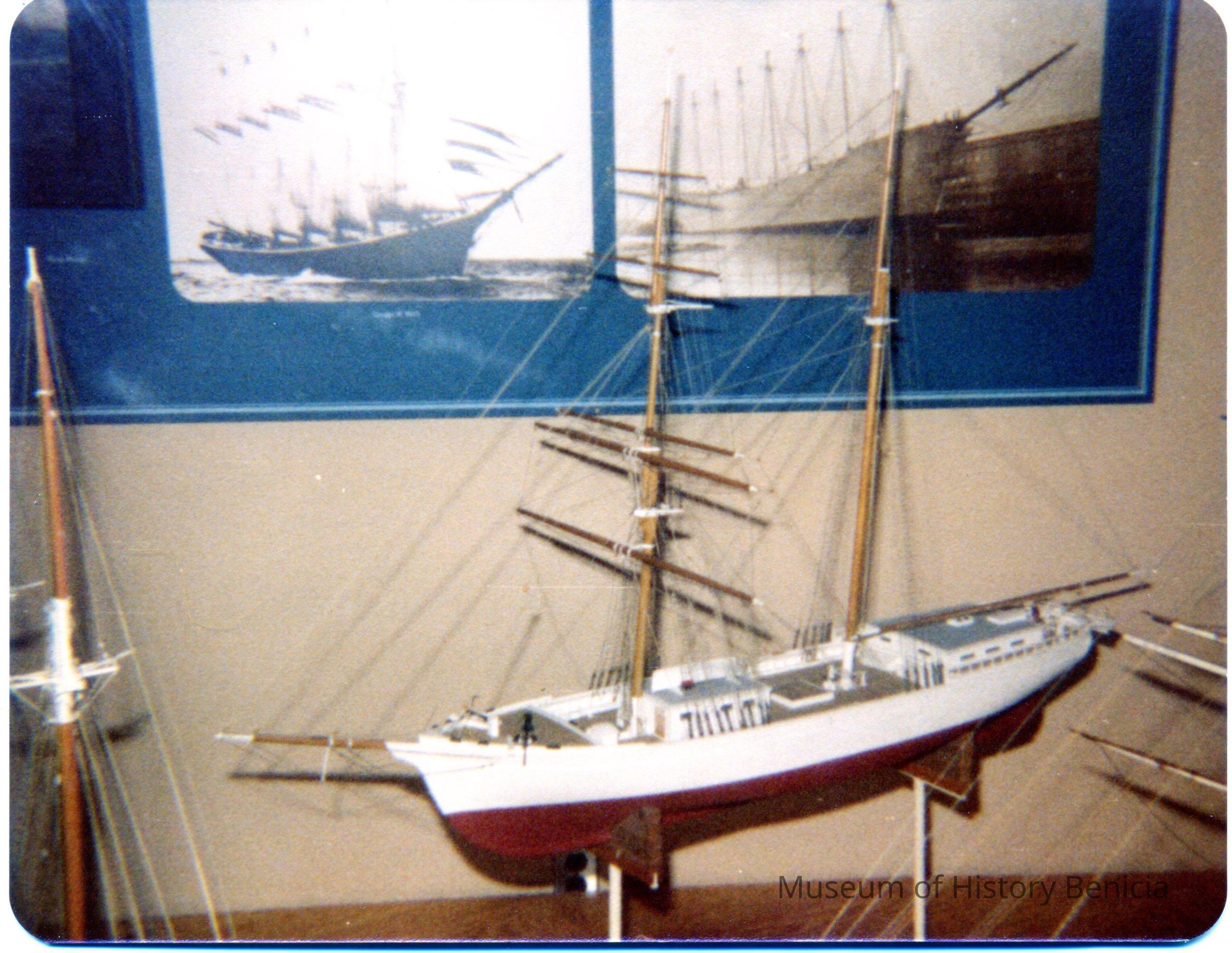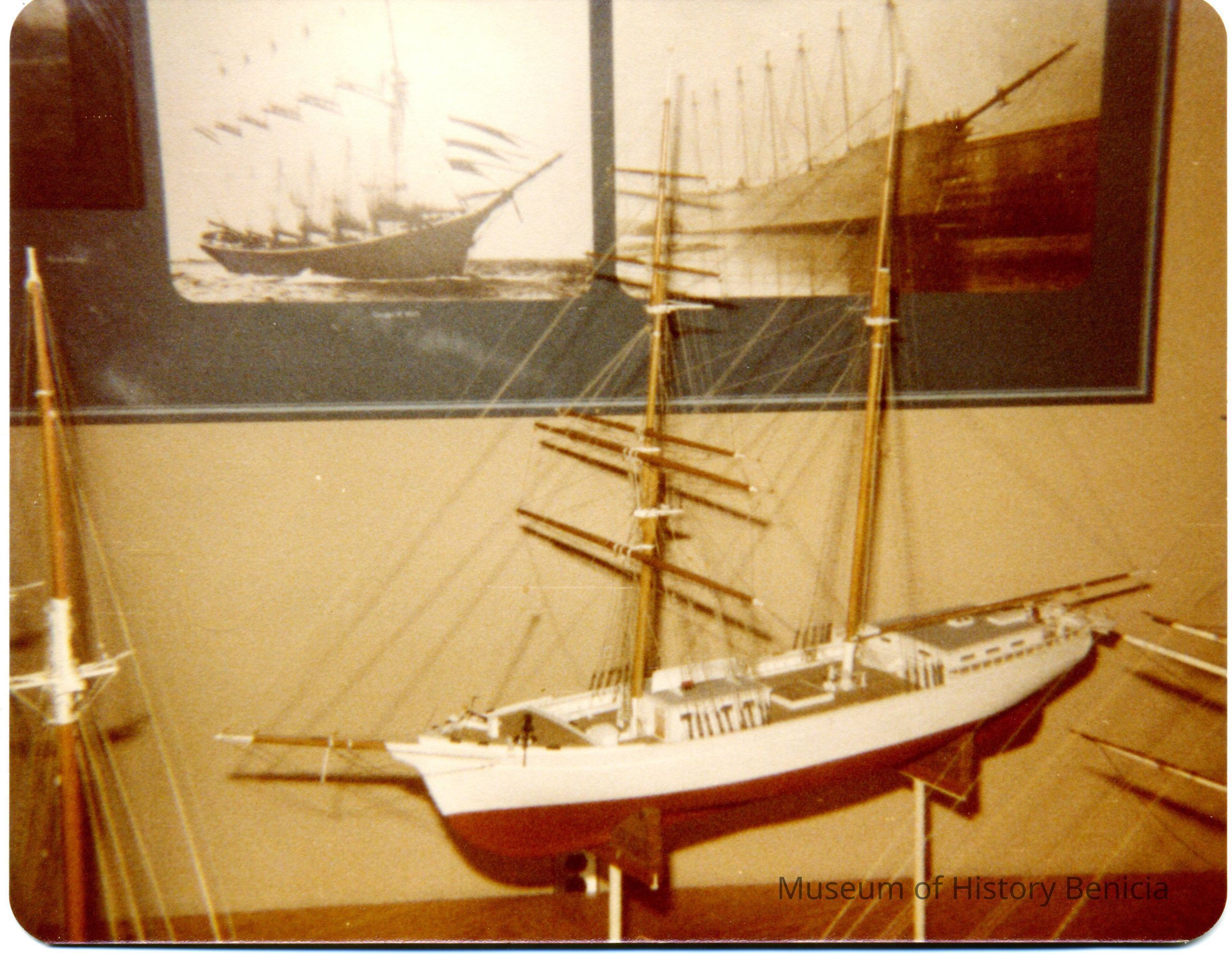 This is a photograph of the model of the Brigantine Galilee at the Smithsonian Museum. It was taken by Ray Costa in 1980.