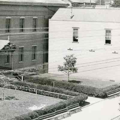 This is a photo of the Old Benicia State Capitol building and Fire House. It is a close-up of the photo 2008.015.0084.