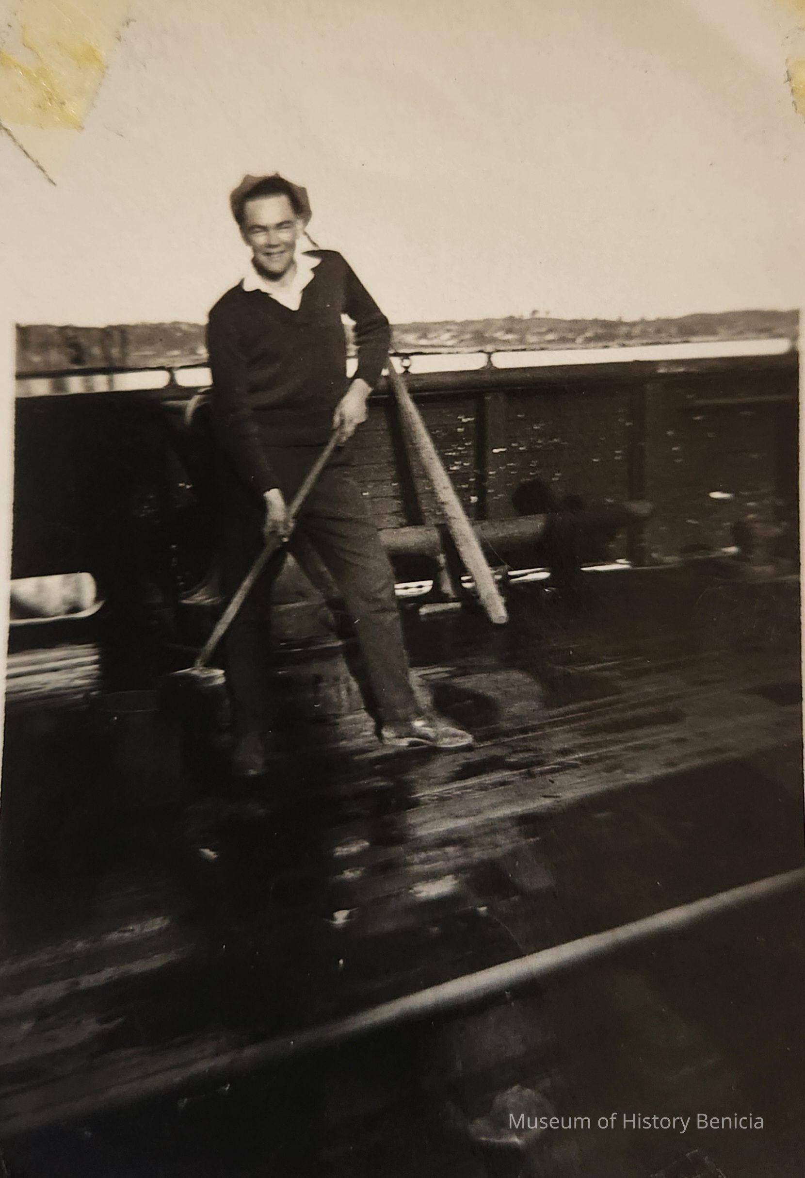 B/W Photograph of an unidentified man with a broom.