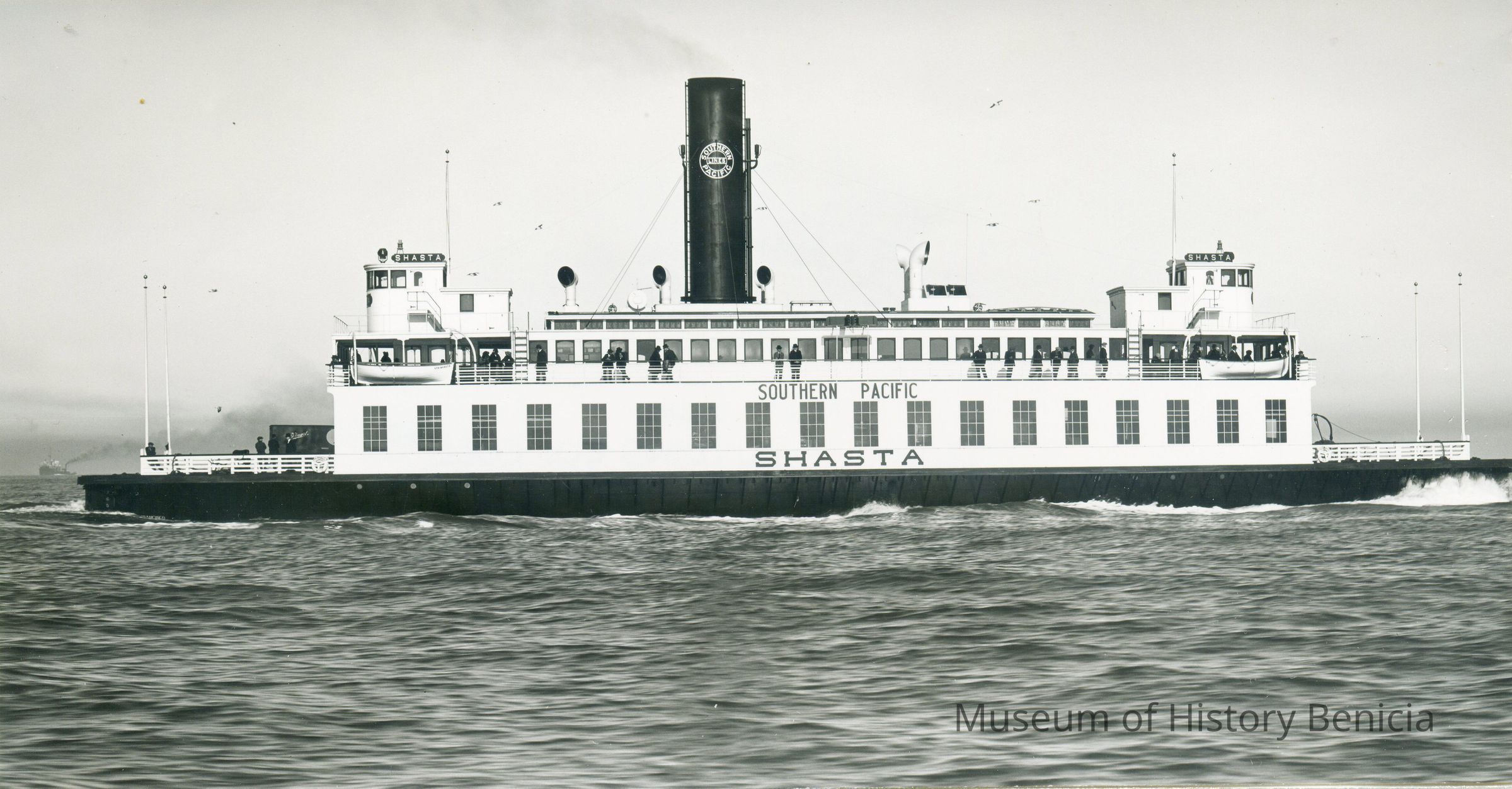 This is a photo of the Ferryboat Shasta. It is a copy of a photo from the S.F. Maritime Museum number B7.24285GL. It comes from the Bethlehem Shipuilding Co. Coll #1095Collection