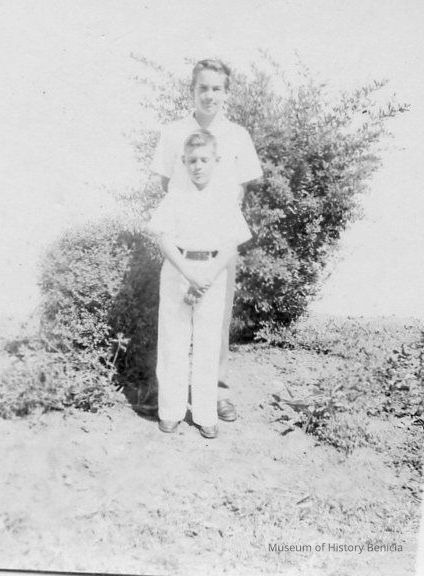 B/W Photograph of two boys. The one in front is Ed Rankin.