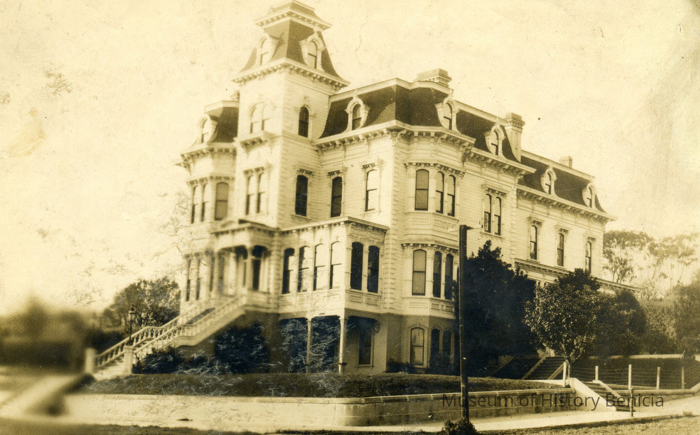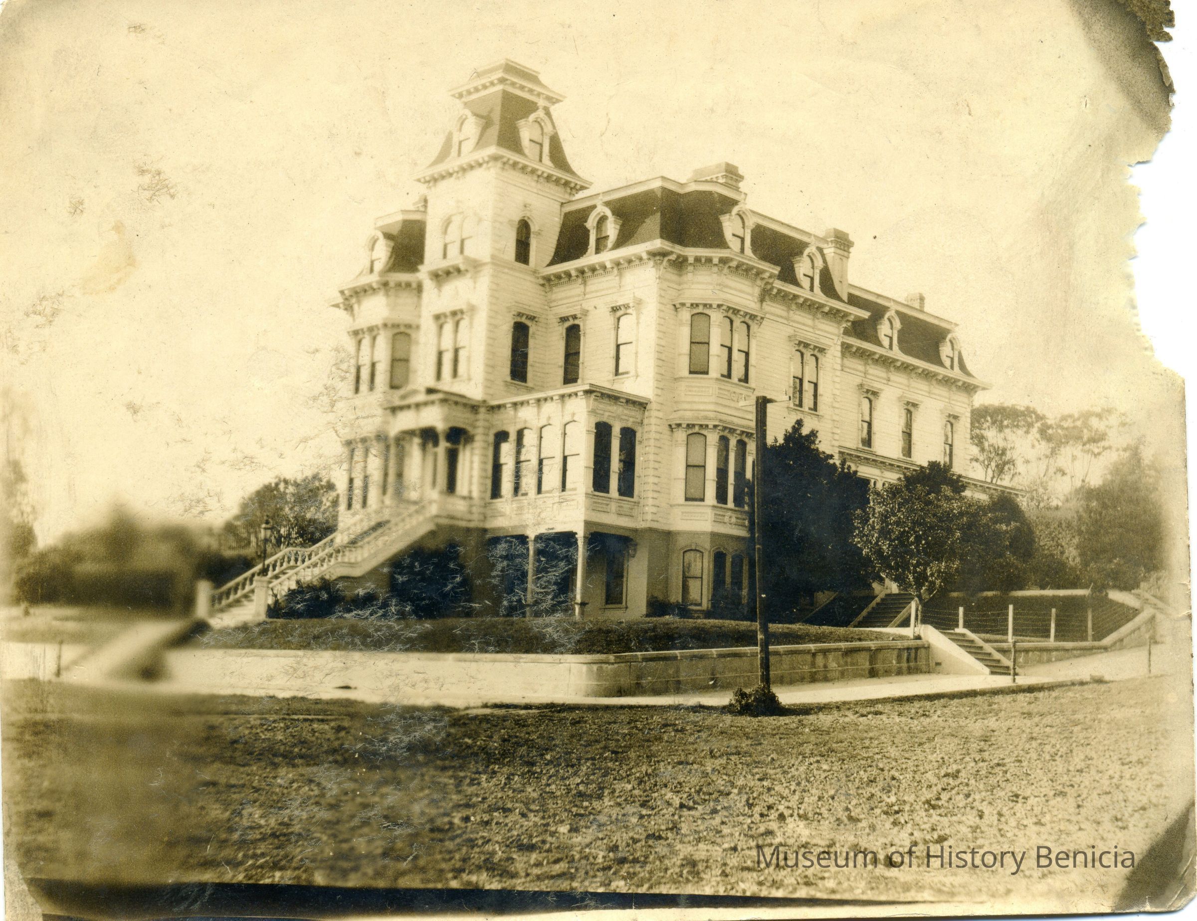This is a photograph of the Hastings mansion. It was the home of Daniel N. Hastings and his family. Daniel Hastings arrived in Benicia in 1850 and prospered as a butcher. He acquired more than 3,000 acres of land in the vicinity and served as a city councilman.