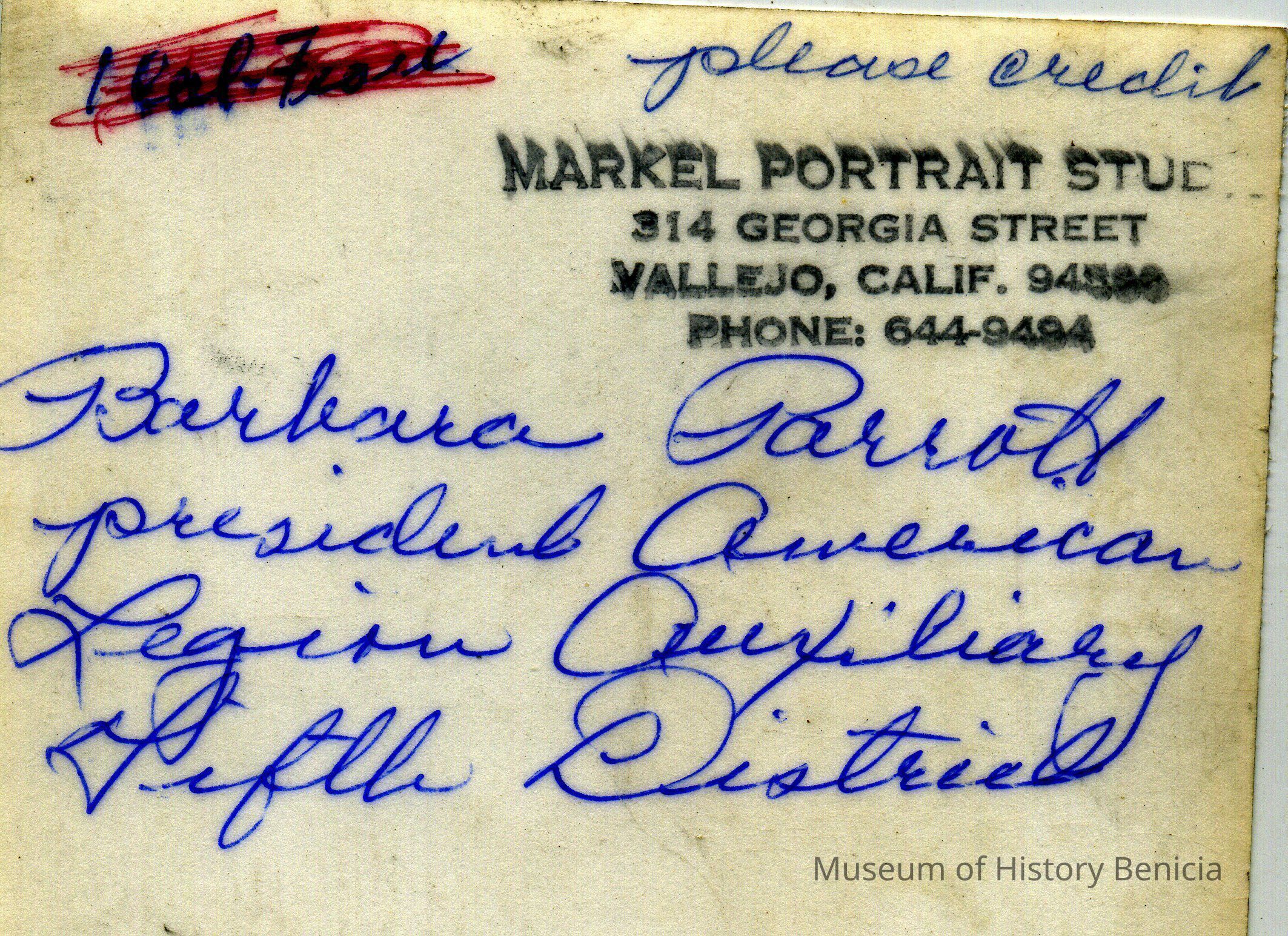 This photo is of Barbara Parrott who was president of the American Legion Auxiliary Fifth District.