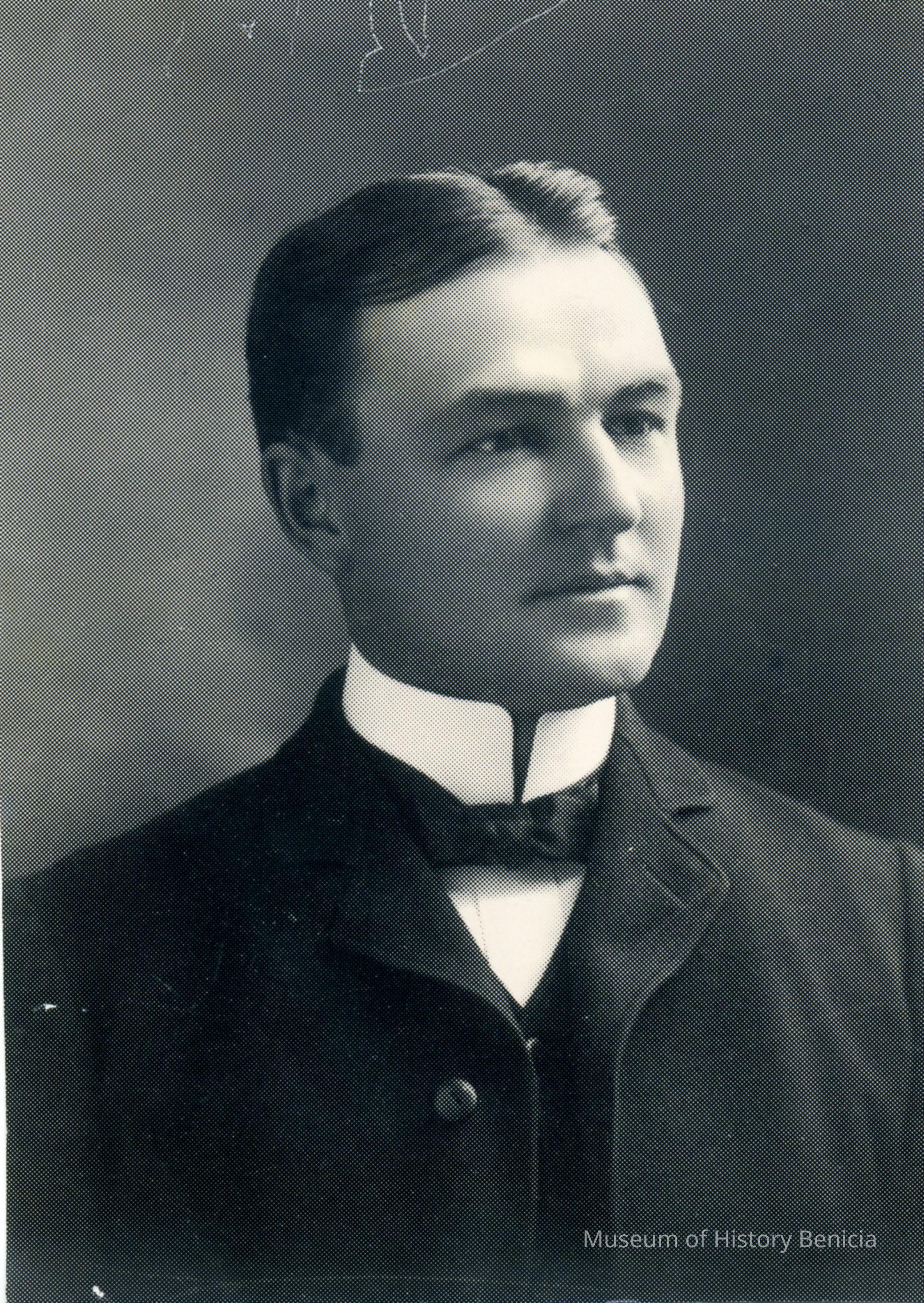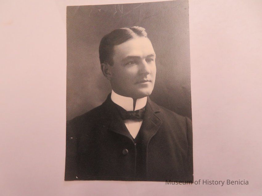 This photo is of Dr. Fry from Benicia. It is Dr Philip B Fry who graduated from Physicians and Surgeons College in San Francisco in 1902. He interned at Franklin Hospital in San Francisco for two years. He was a doctor in Benicia from 1904 until his death in 1934.Collection
