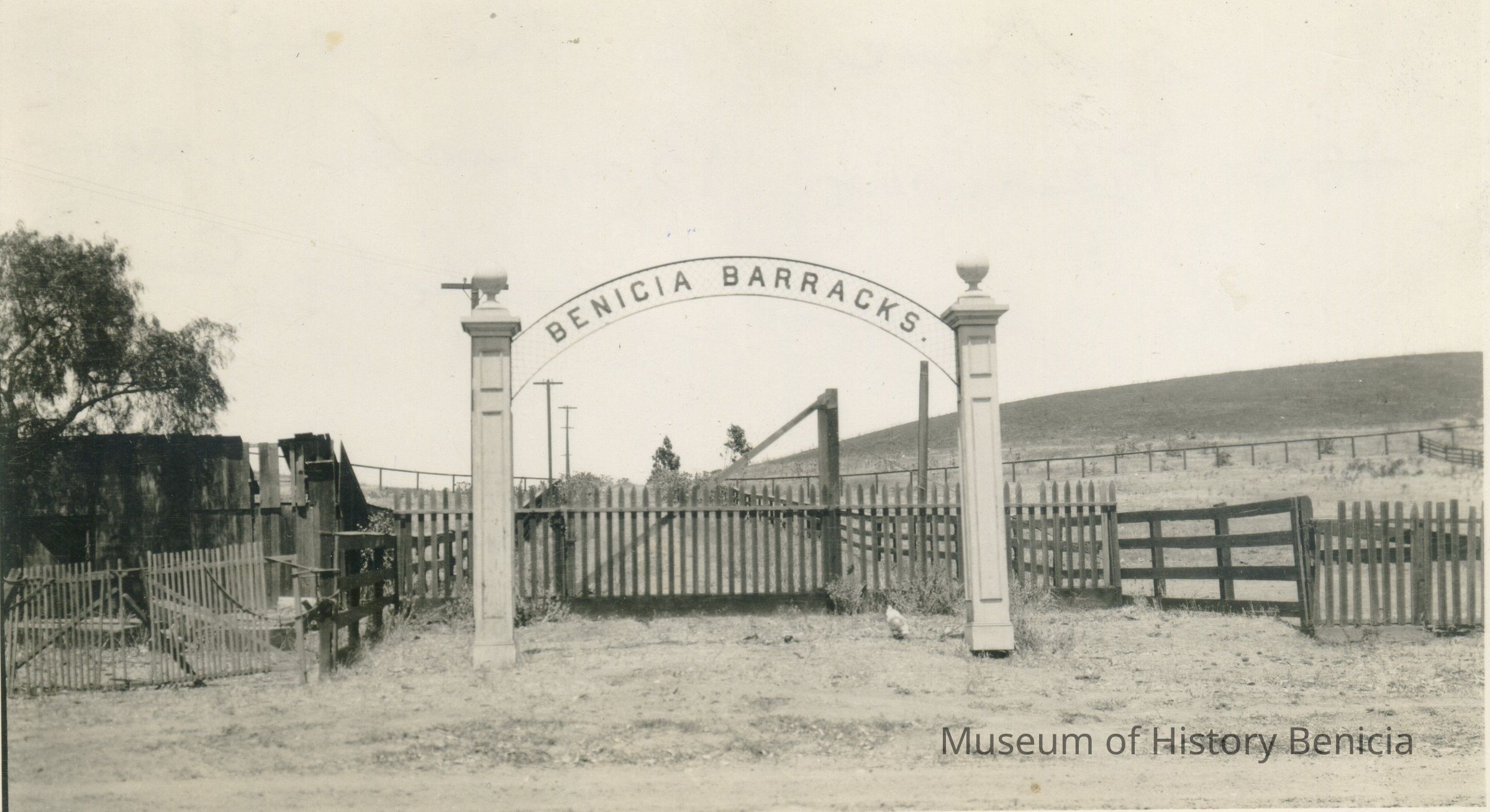 This is a photograph of the entrance to the Benicia Barracks near the present Catholic cemetery.