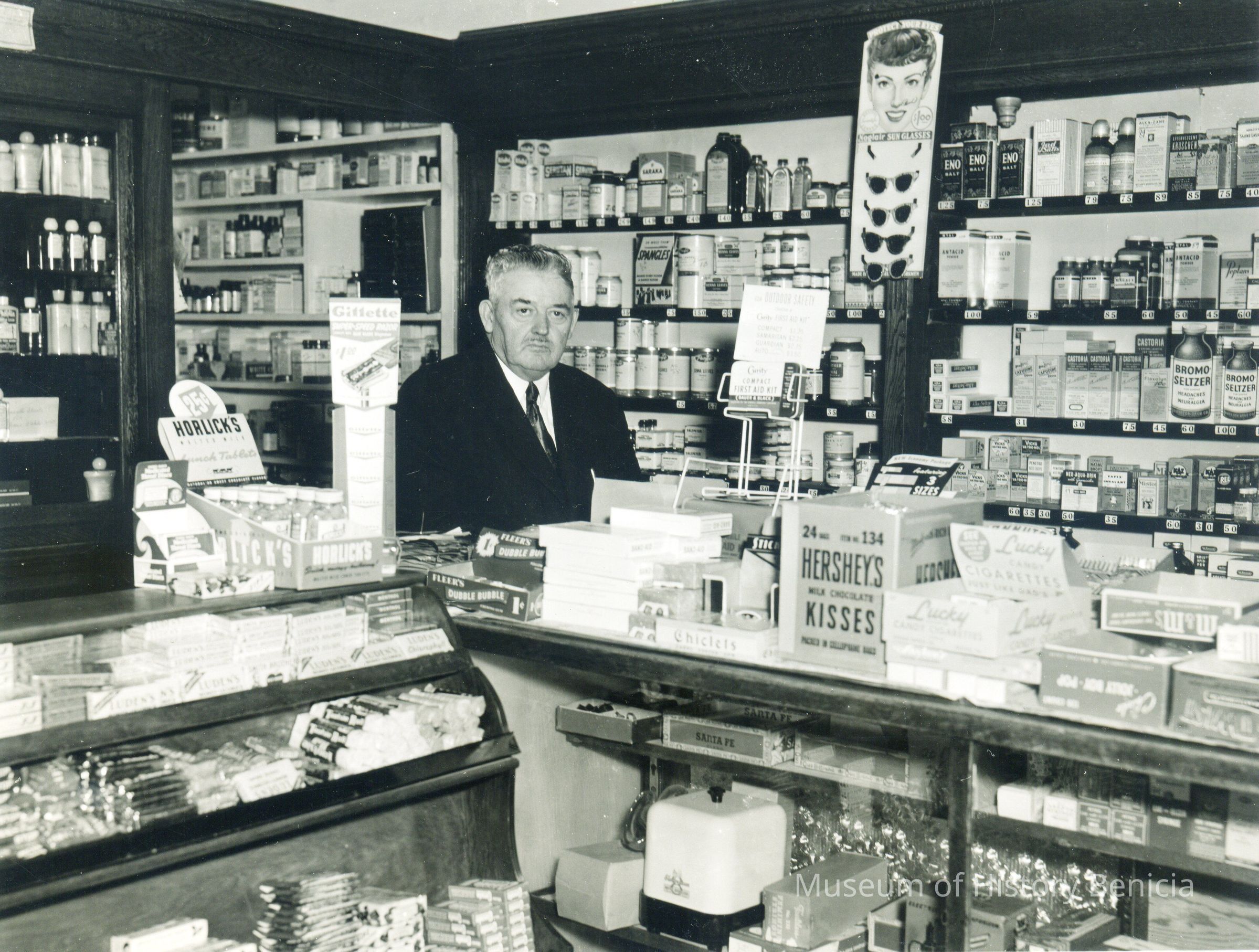 This is a photograph of Jack (John J.) O'Grady in his Pharmacy in Benicia.