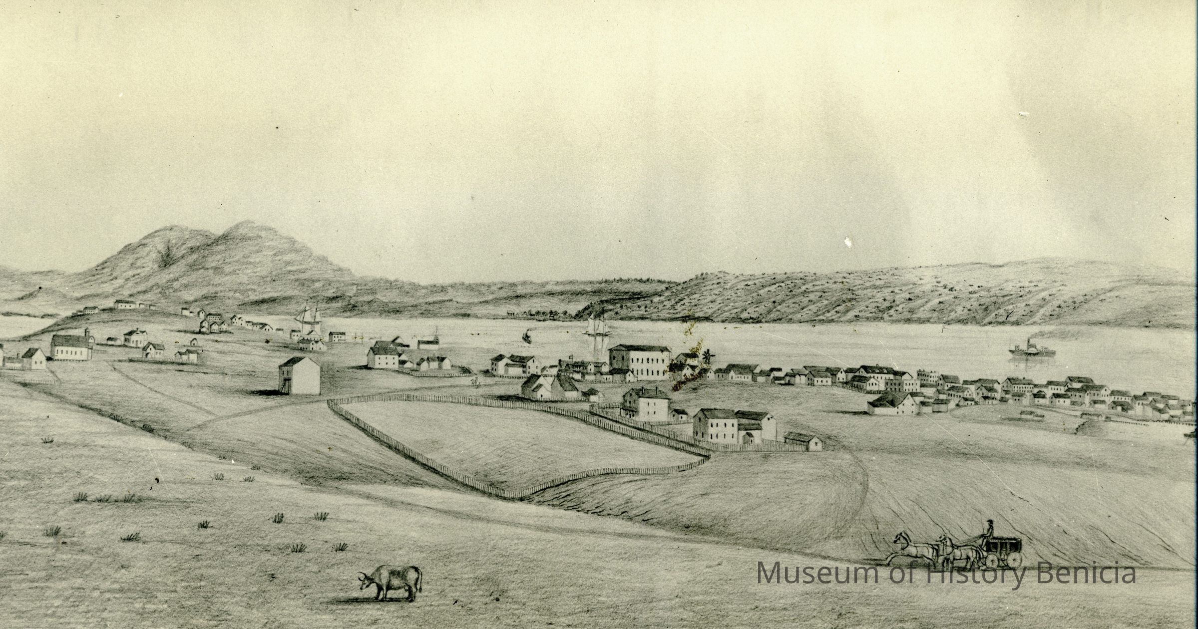 This is a photo of a drawing of Benicia from 1855.