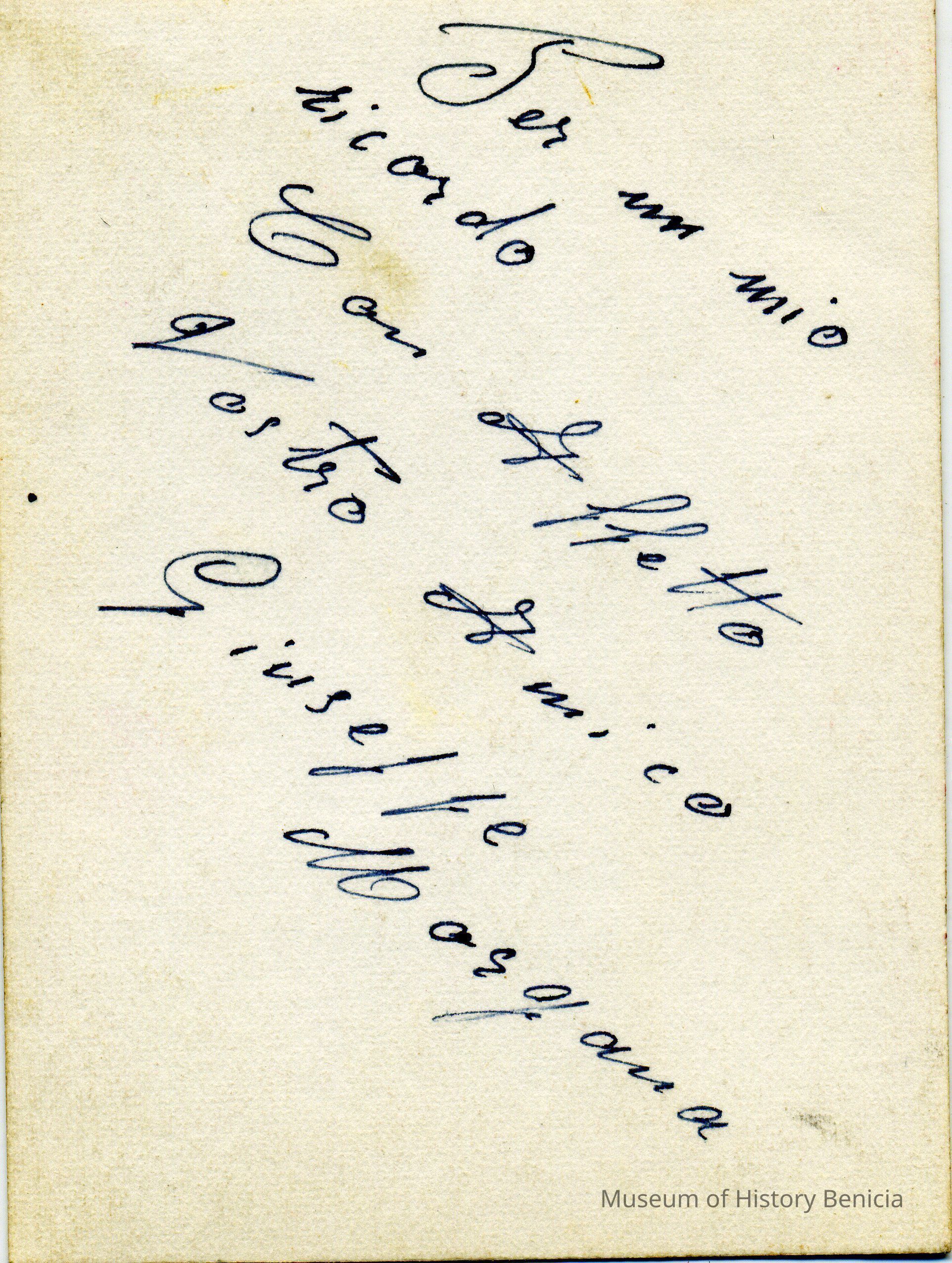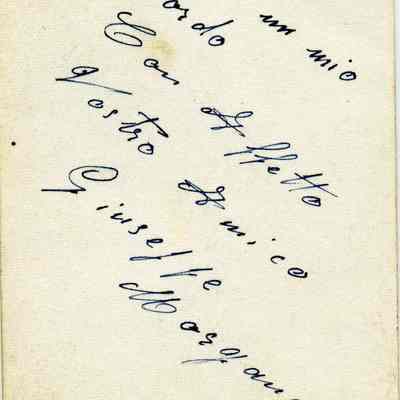 A photo of a man in a suit. On the back is written something in Italian. There is a name possibly Giuseppe Masyama.