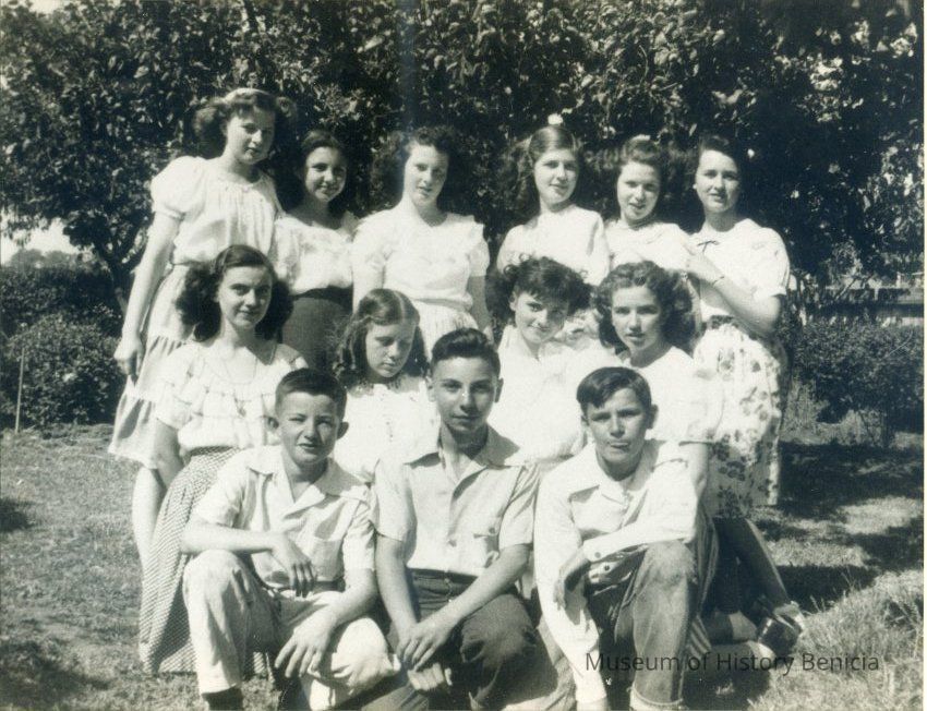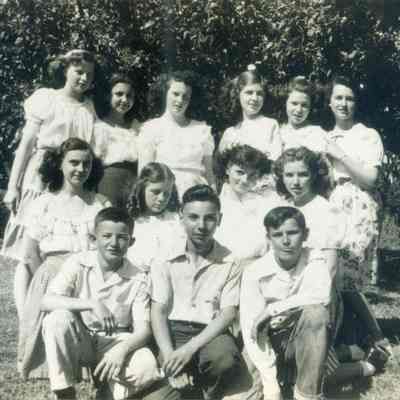 This is a photograph of the class of 1947 at St. Catherines Academy. The names listed on the back are: