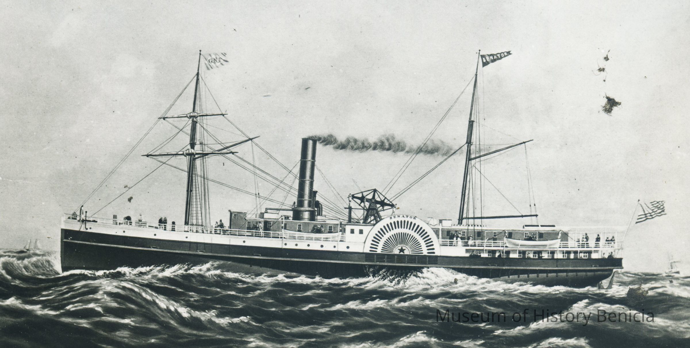 This is a copy of a photograph of the paddlewheel boat Senator. It came from the S.F. Maritime Museum collection.
