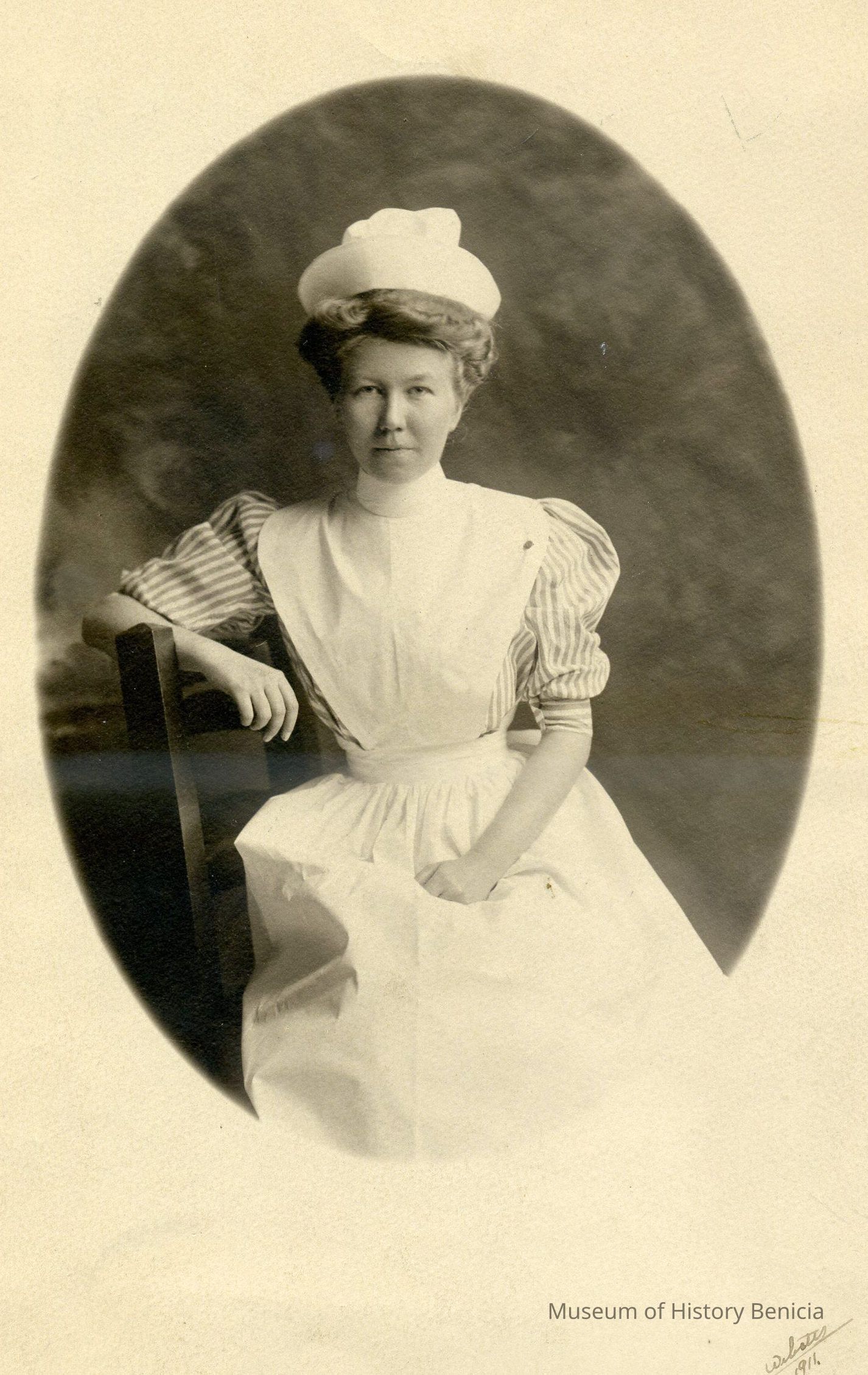 B/W Studio Photograph of an unidentified woman in a uniform, perhaps that of a nurse.