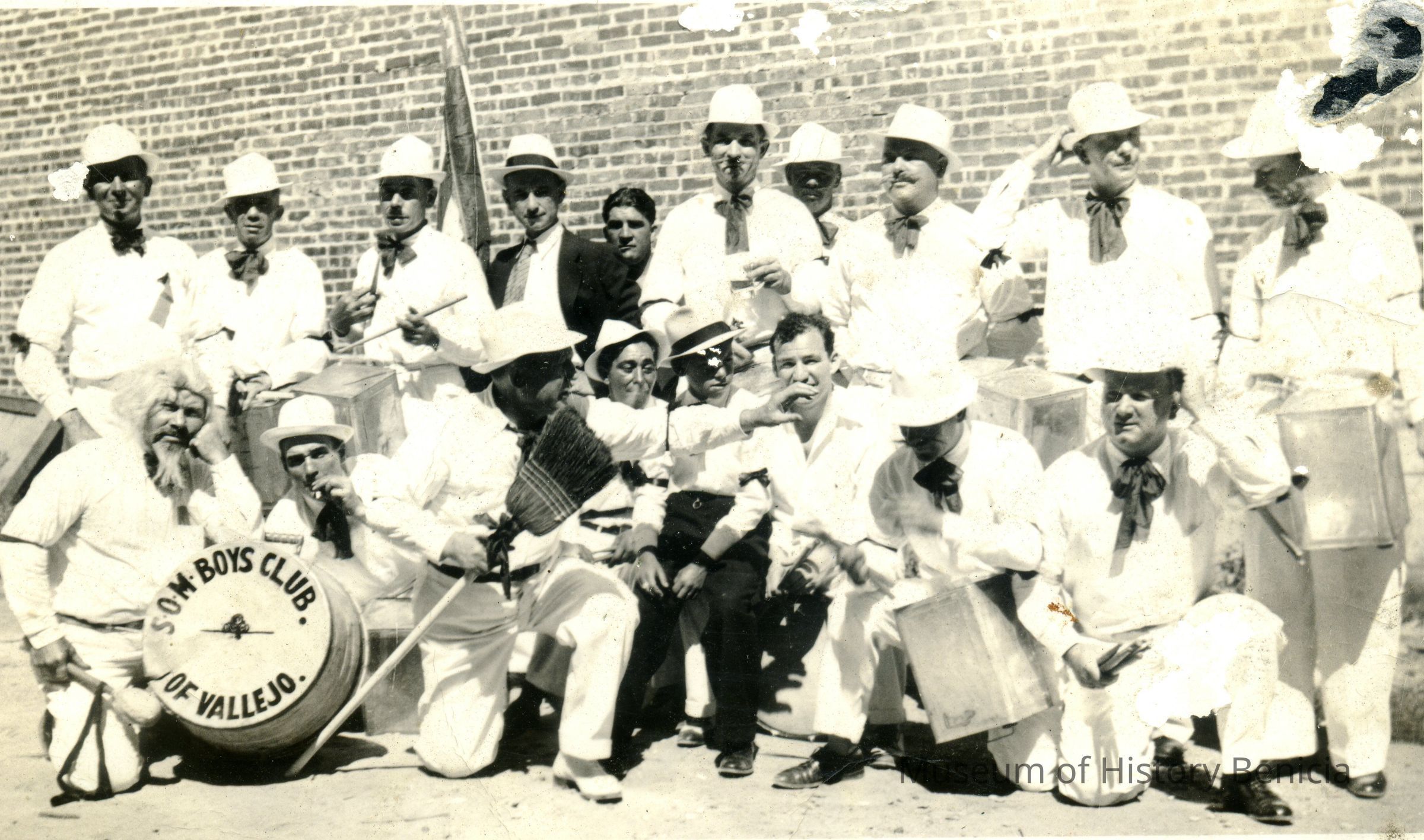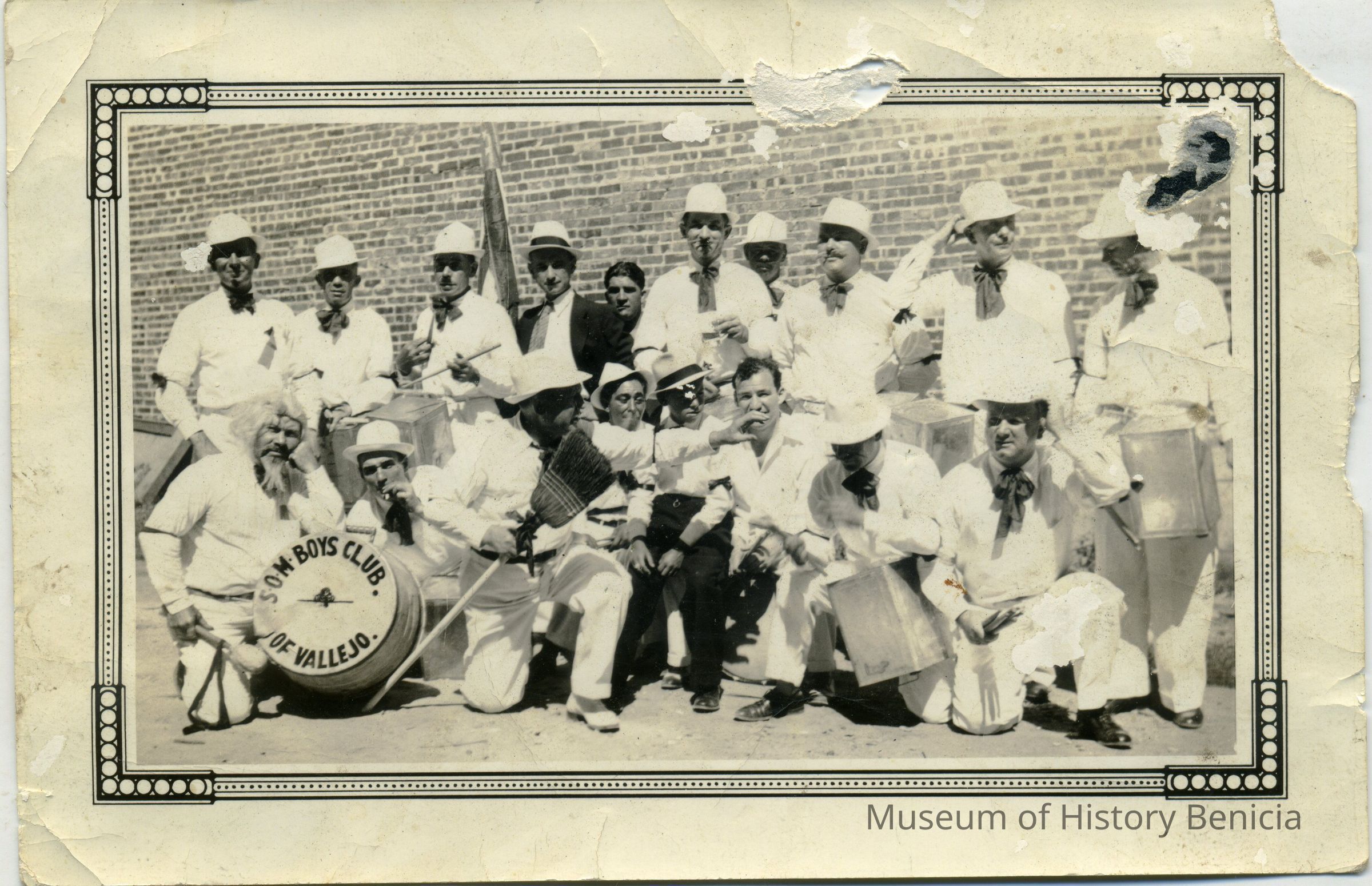 This is a photo of the Boys Club of Vallejo band. The stamp on the back says it was printed 08/07/1986. It came out of an album and is a little damaged.Collection