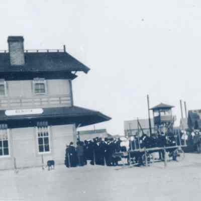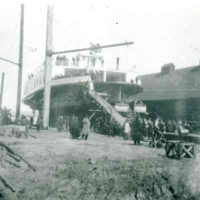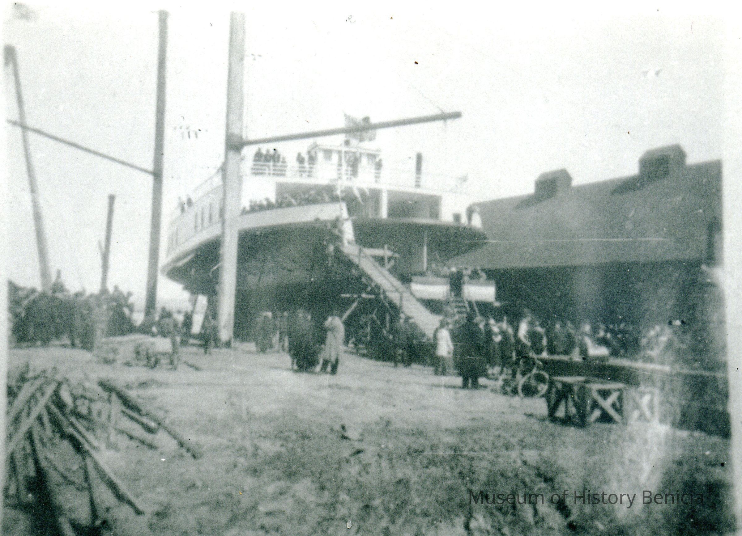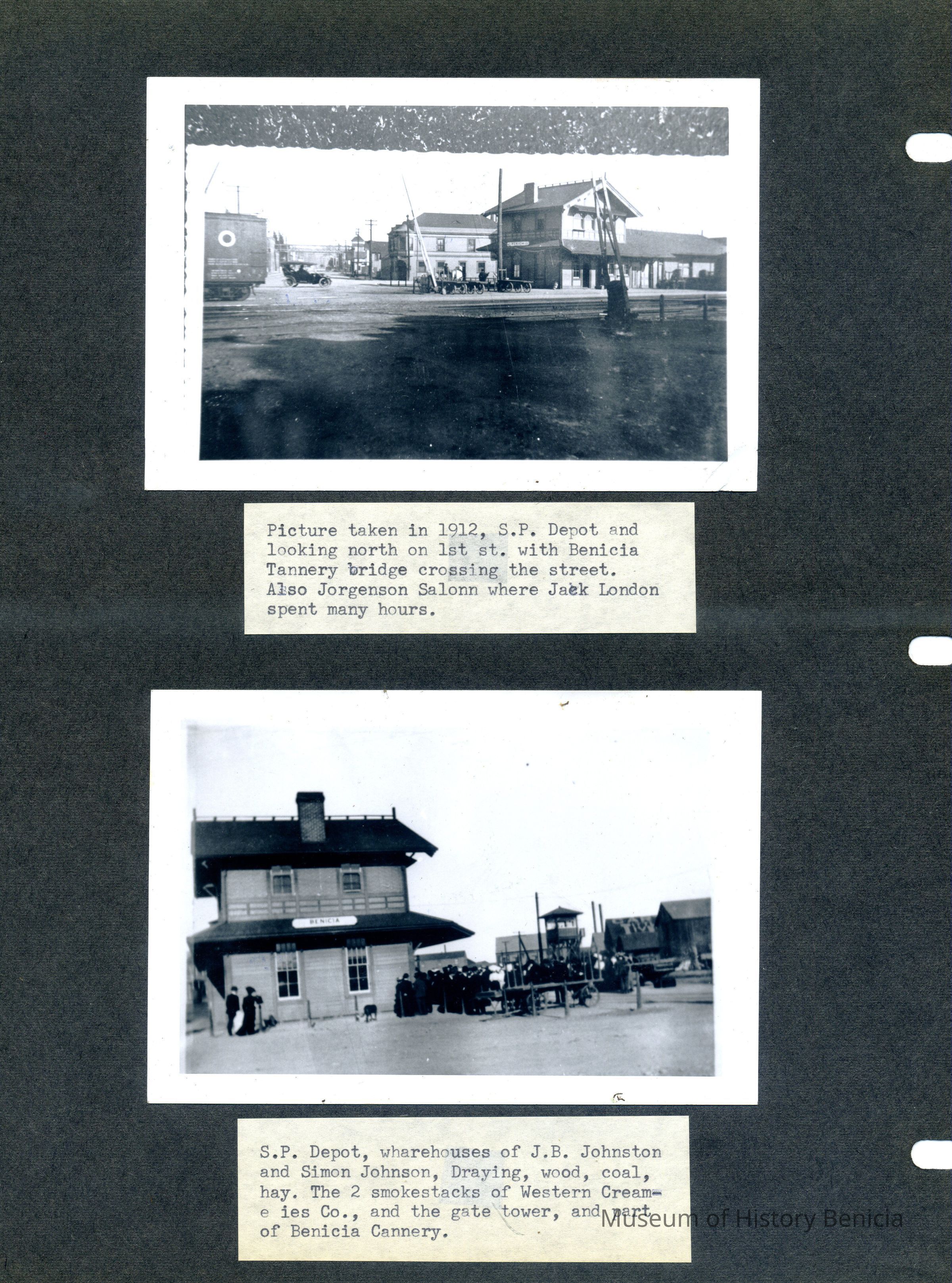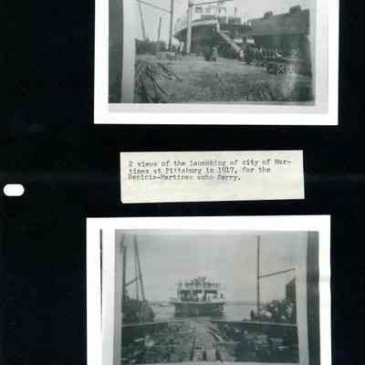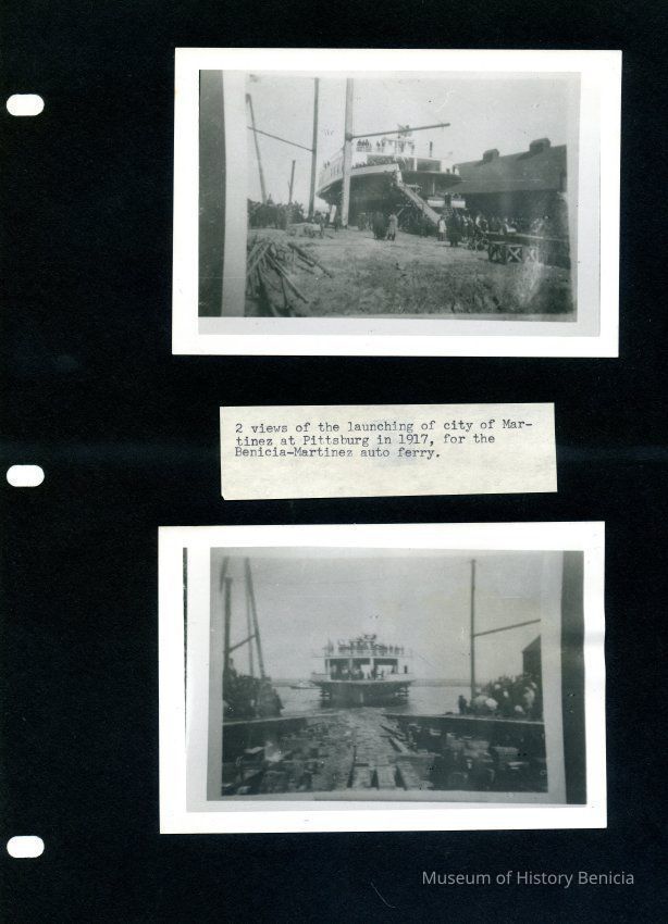 This page has four photos. Two are of the Southern Pacific Railroad station in Benicia and two are of the launching of the City of Martinez in Pittsburg, CA in 1917.Collection