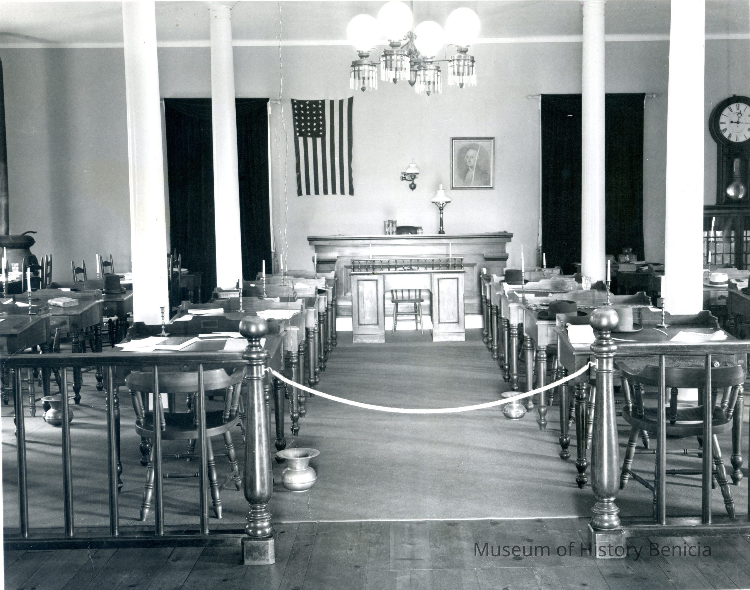 This is a photo of the Senate chambers in the Old Benicia State Capitol.