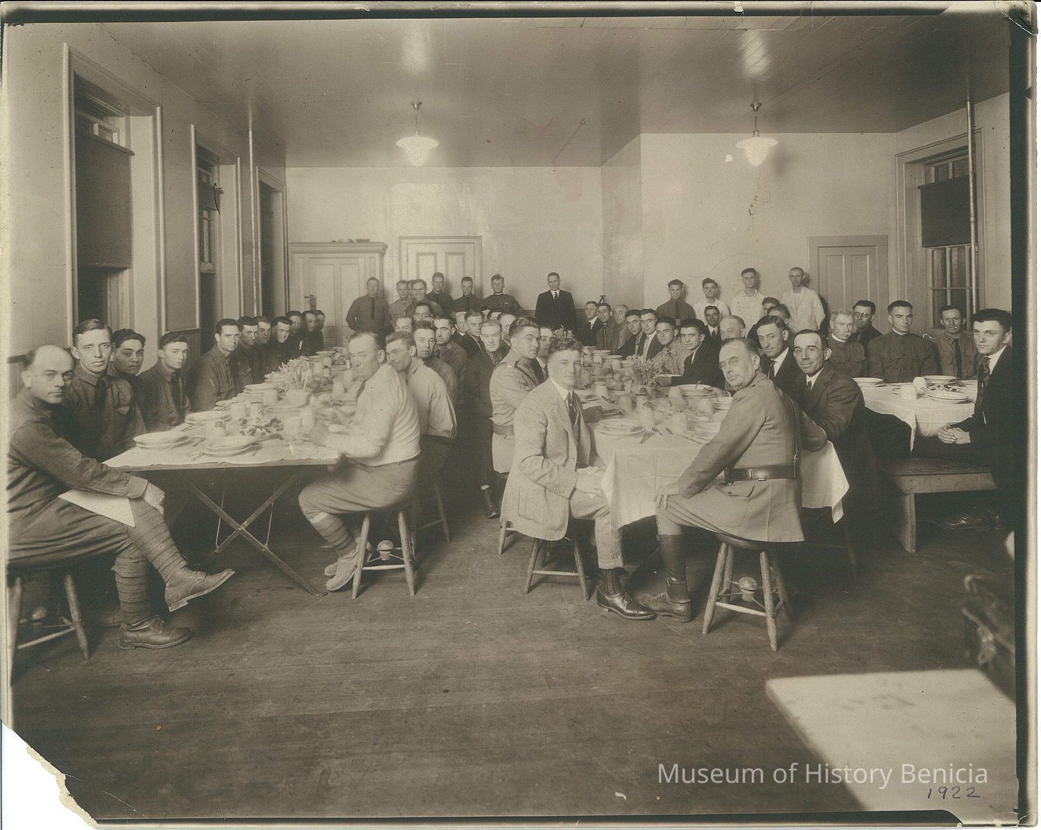 B/W Photograph - According to pencil label on reverse - B.F. Dept. Being entertained at dinner at arsenal mess hall Bldg. #45 after fire and explosion - 1922