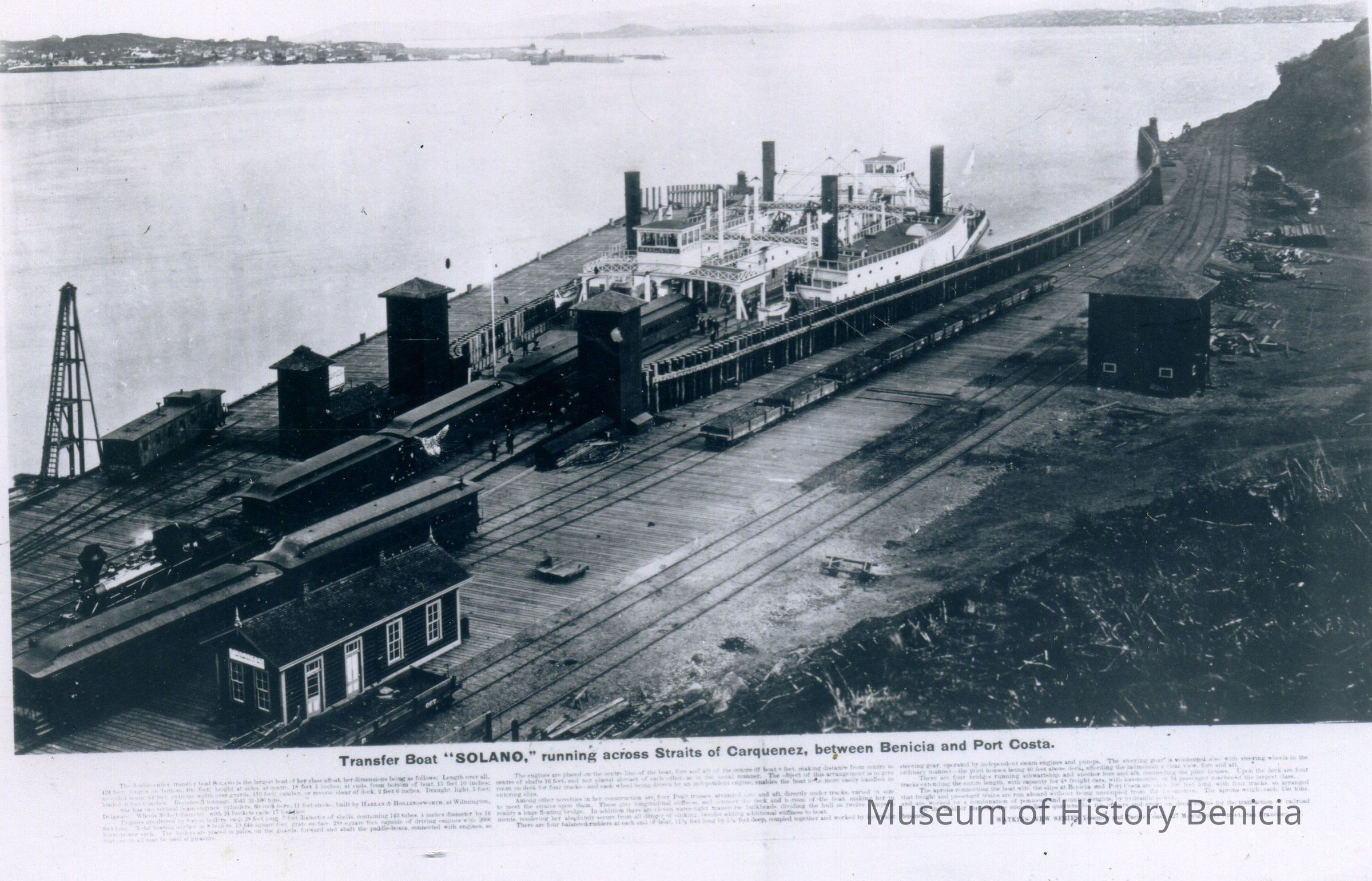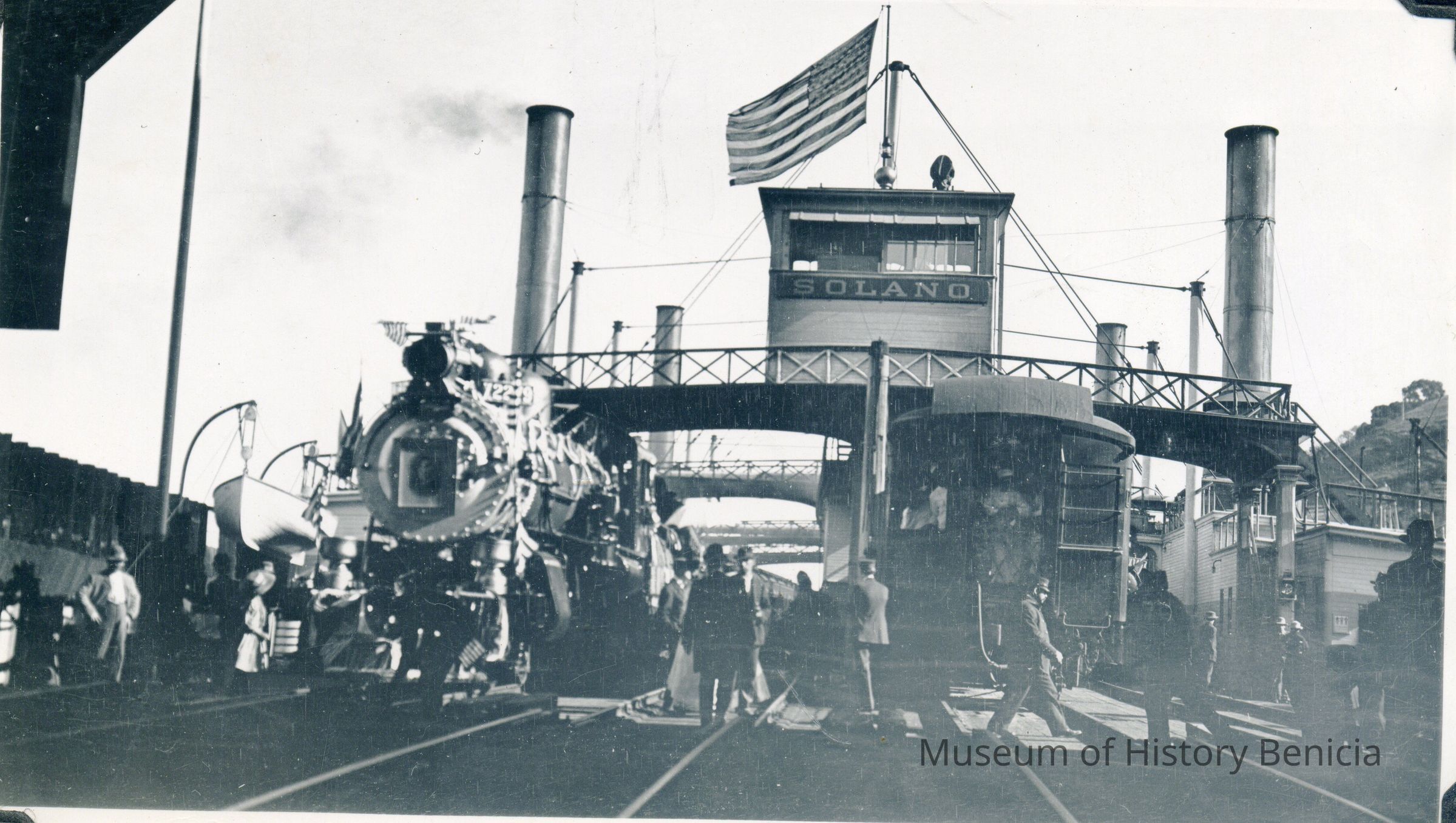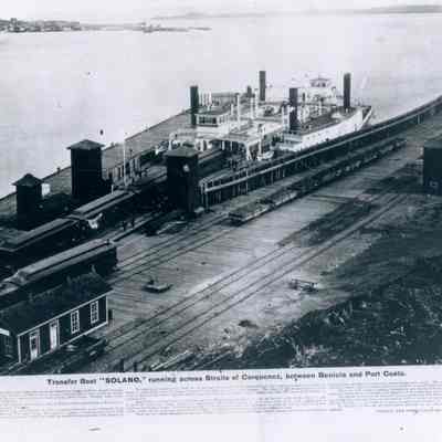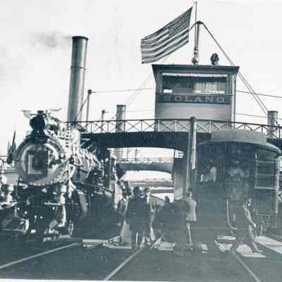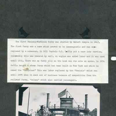 This page has two photos. They are about the ferry Solano. One is a photo with a typed caption above it. The other is a photo attached to a letterhead stationary from the Dept of Parks and Recreation of California. The photo is a copy of a photograph taken by Carleton Watkins.Collection