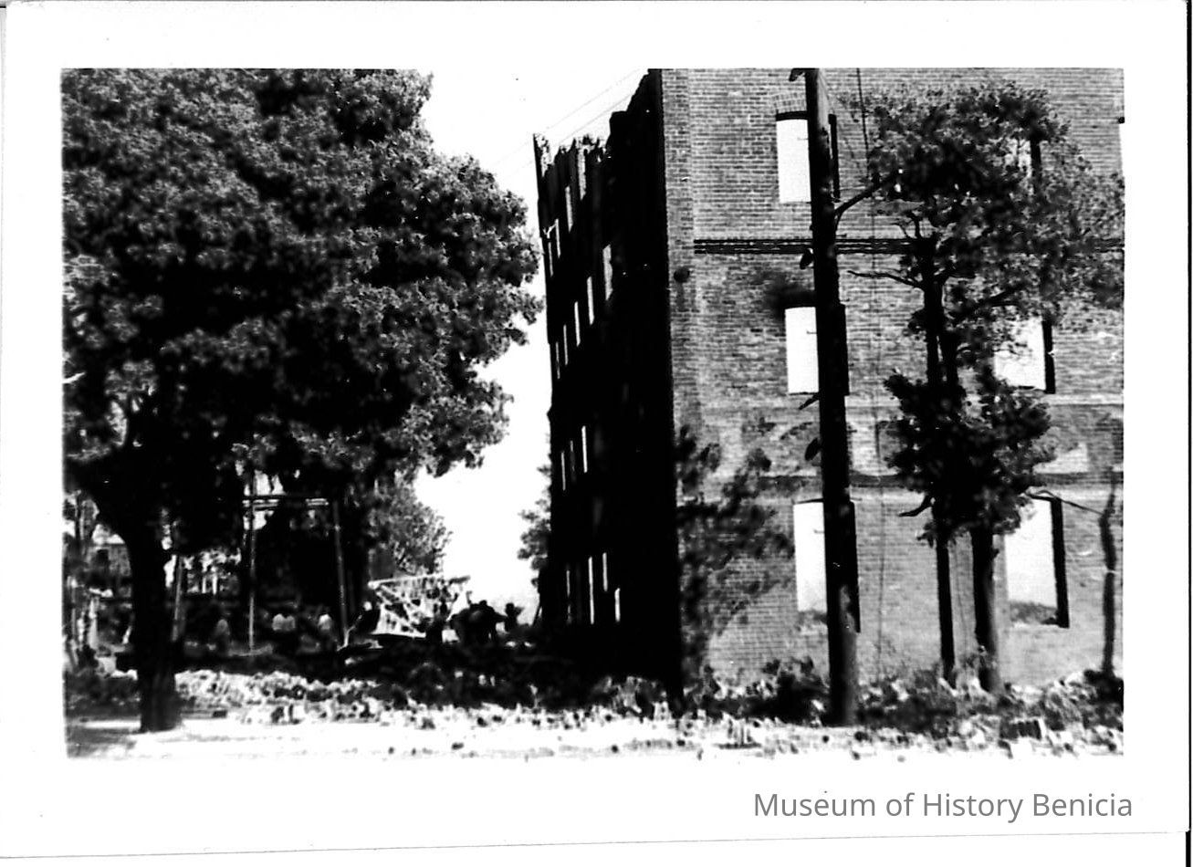 Black and White Photograph of 1947 Tannery Fire - Lable on reverse - Looking East