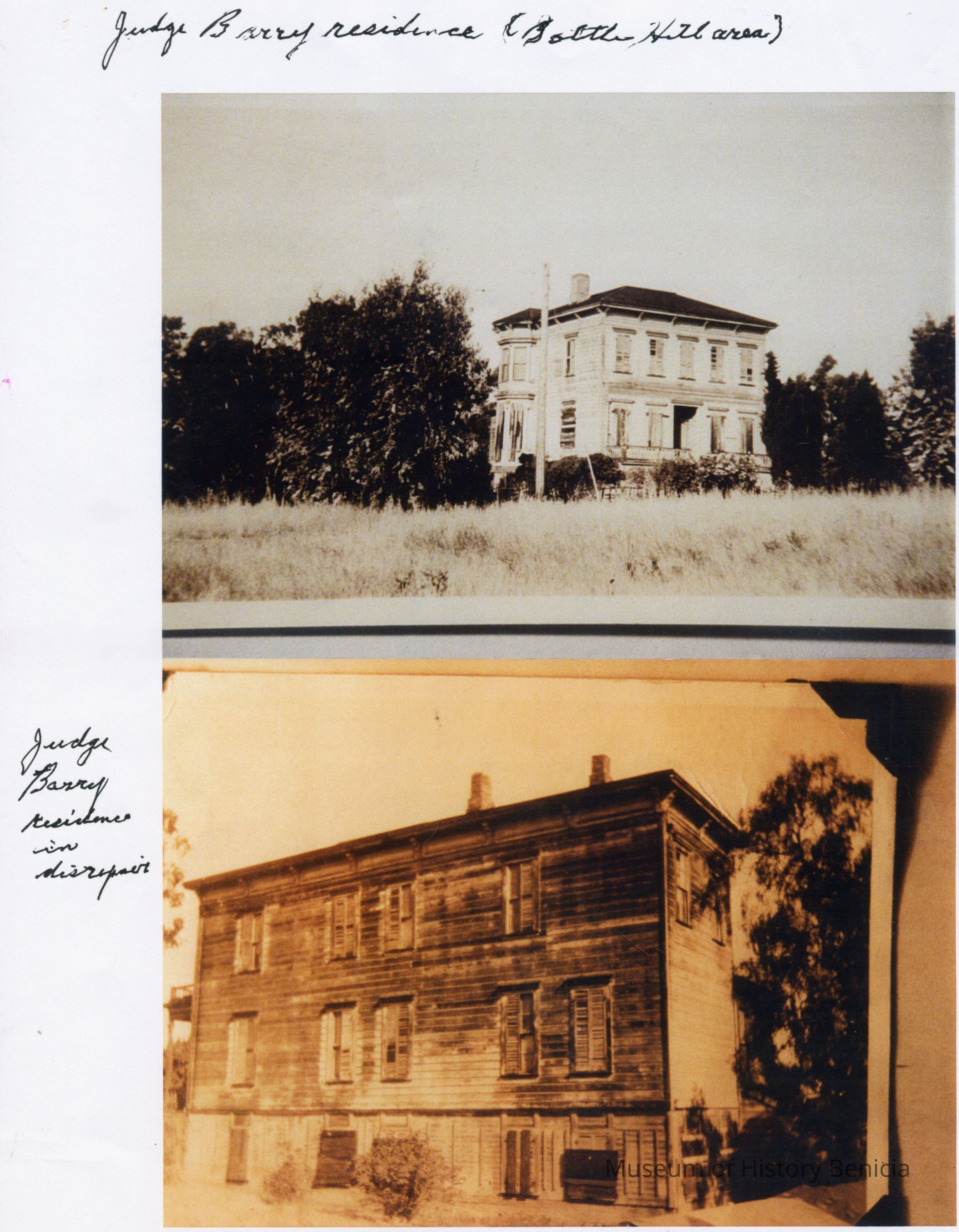 This is a copy of two photos of Judge Barry residence. The house was in the Bottle Hill area in East Benicia.