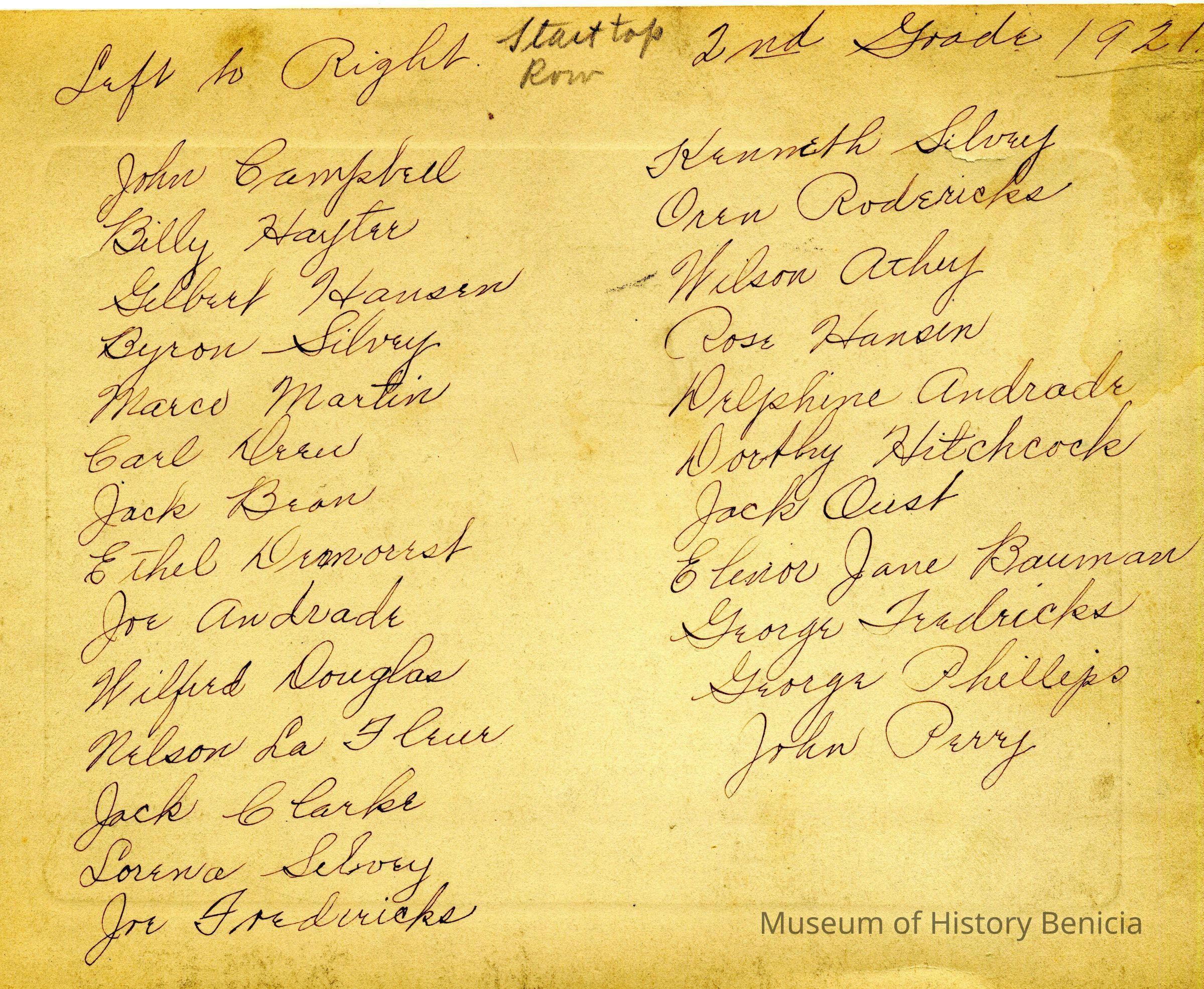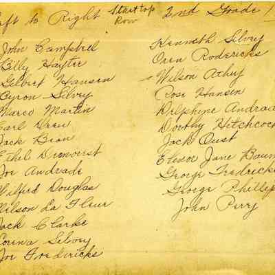 This is a photo of the school children in the 2nd grade in 1921. They are identified on the back as: