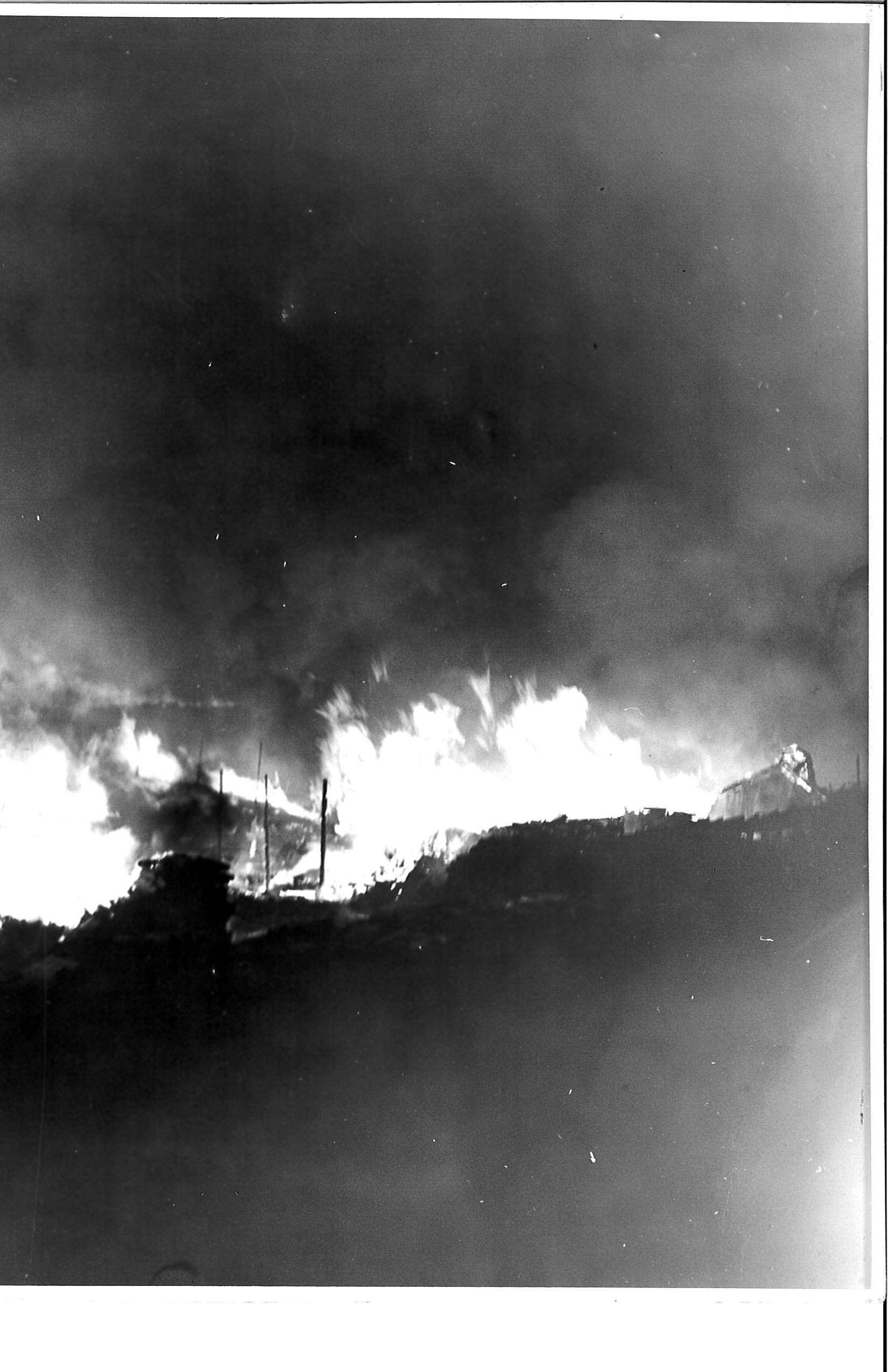 Black and White Photograph of the Benicia Tannery Fire - 1944? in pencil on reverse