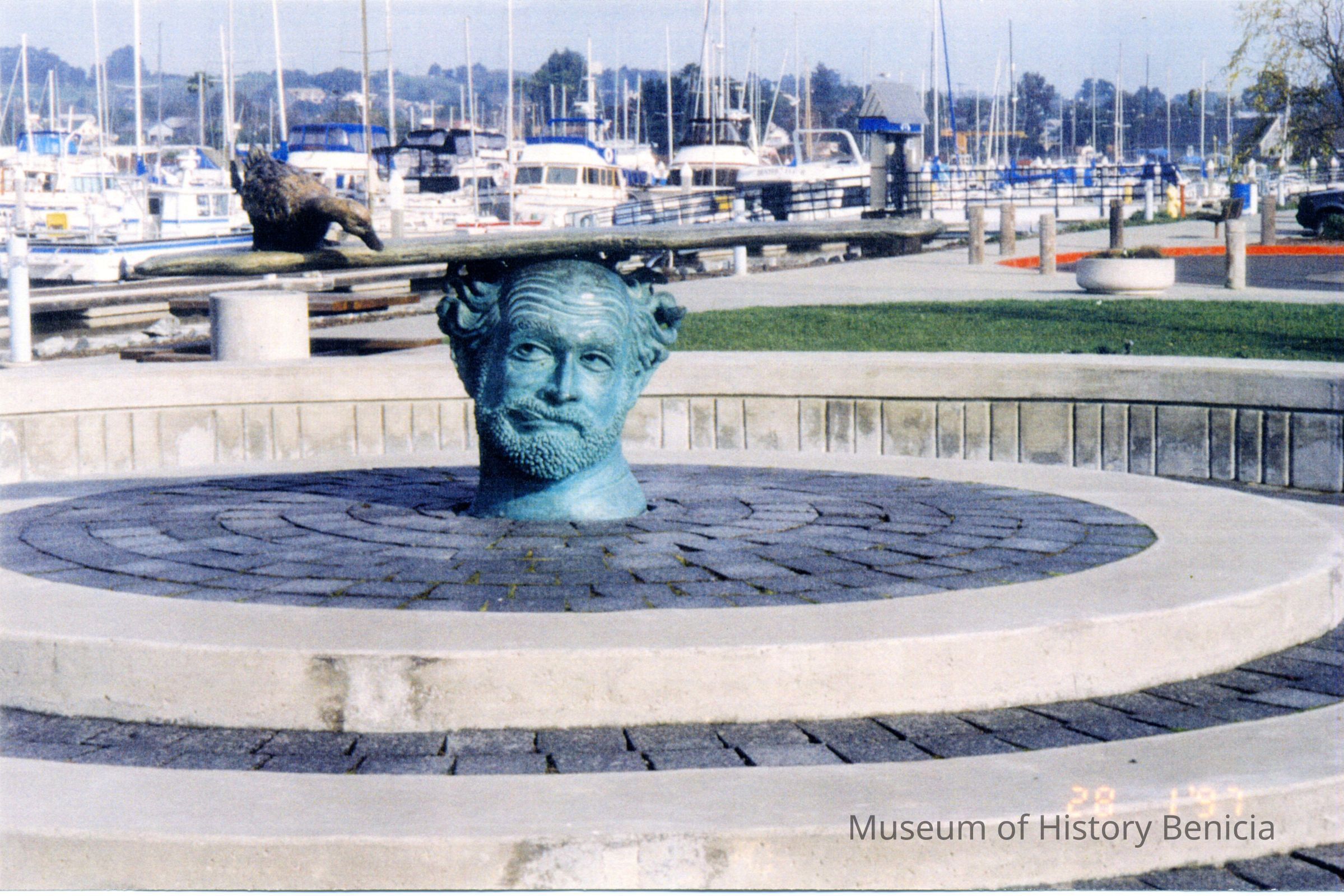 This photo is of the statue done by Robert Arneson in the Benicia Marina. The photo was taken in 1997. Bob Arneson died in 1992.