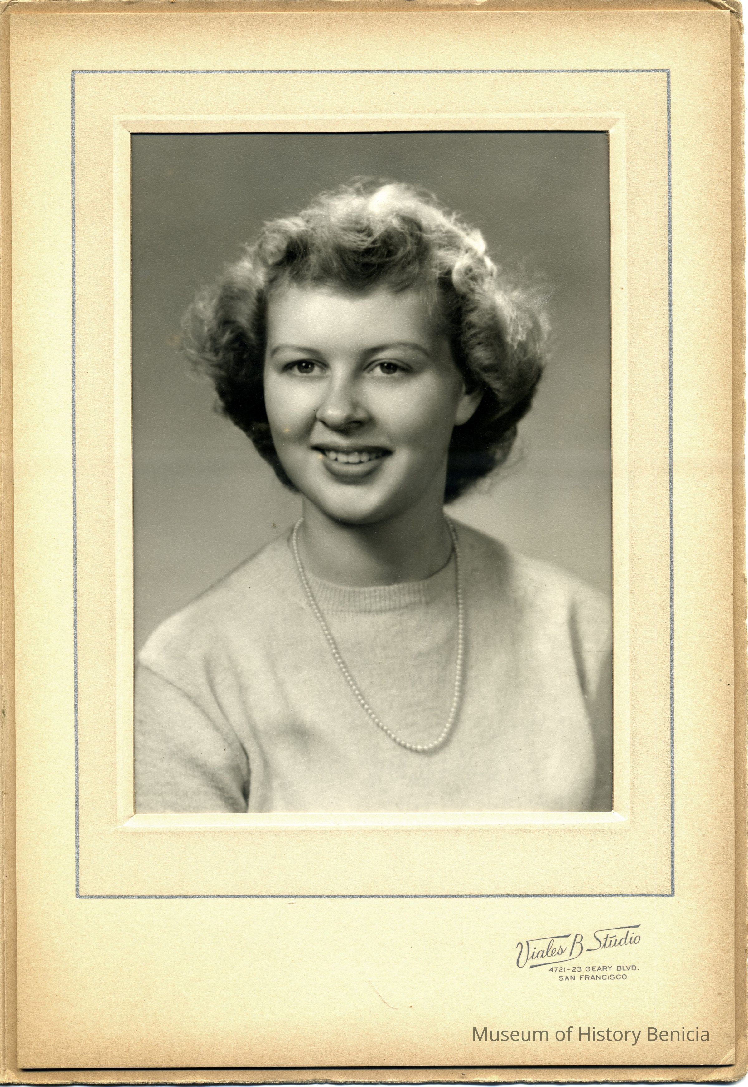 This is a studio photograph of Diane Wassmann. It is inscribed to her aunt and uncle Jack and Olivia O'Grady.