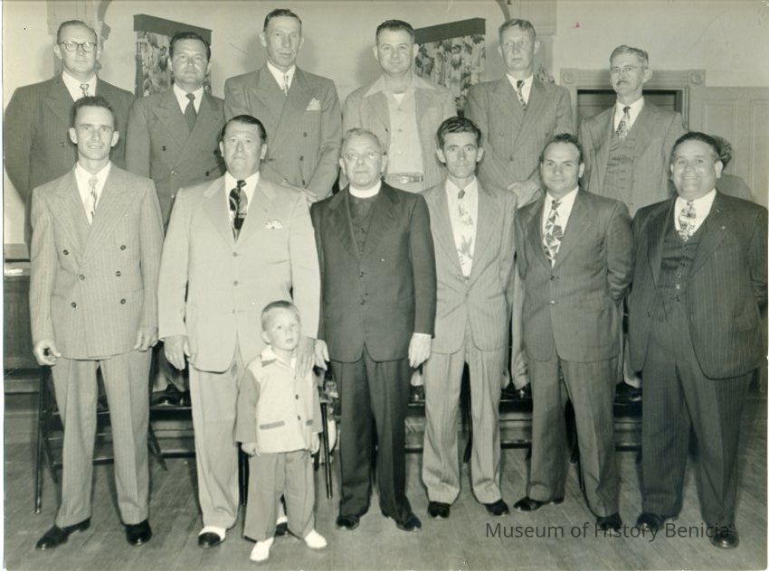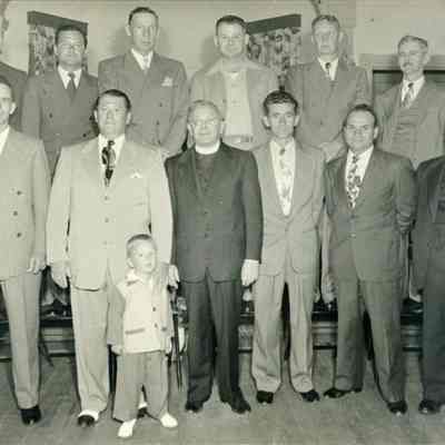 This is a photo of Father Knopf and men from the Young Men's Institute.