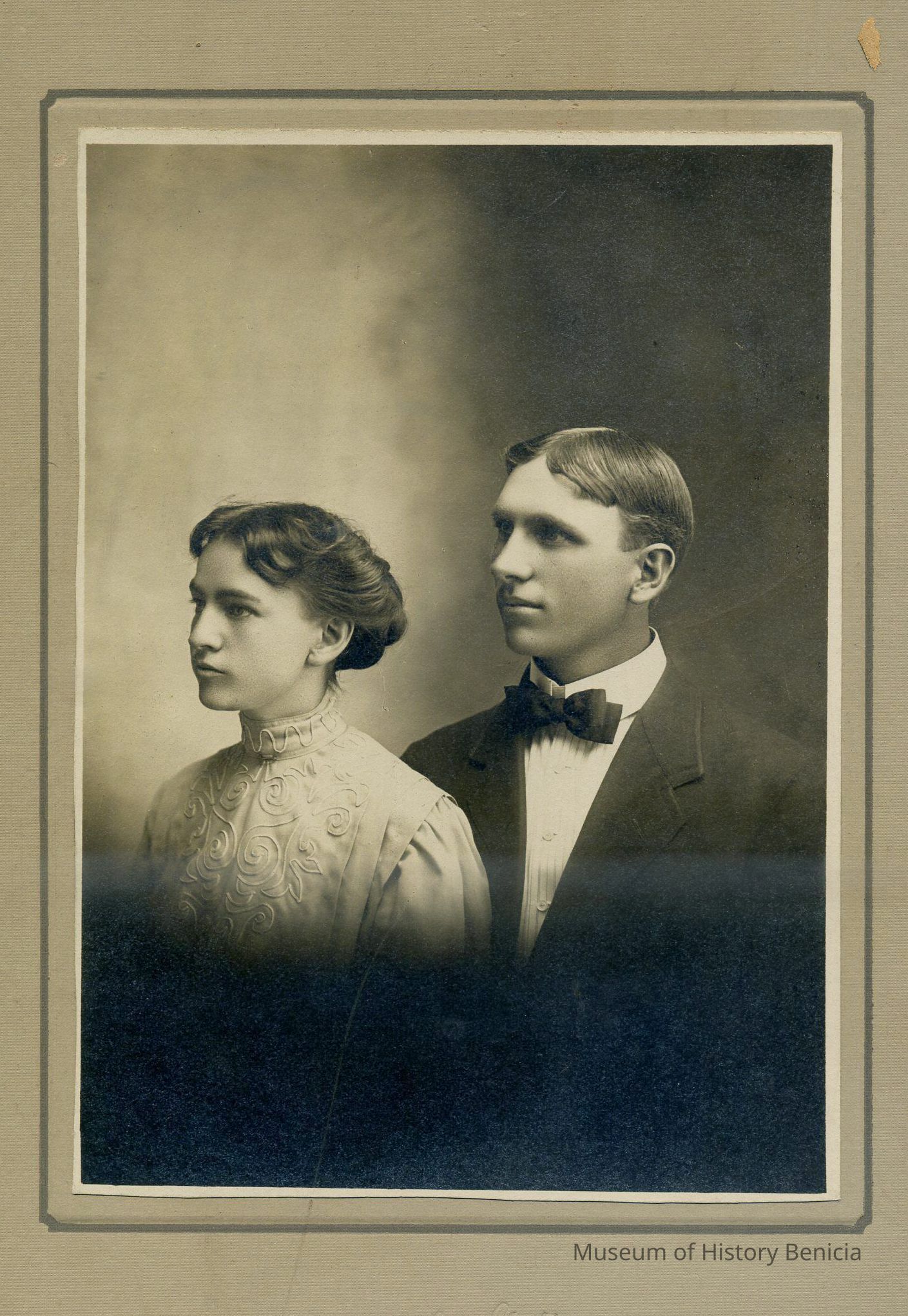 B/W Photograph of Ida Wapler Belknap and Forrest Belknap in Beloit Kansas on January 21-22 1910 in a gray mat