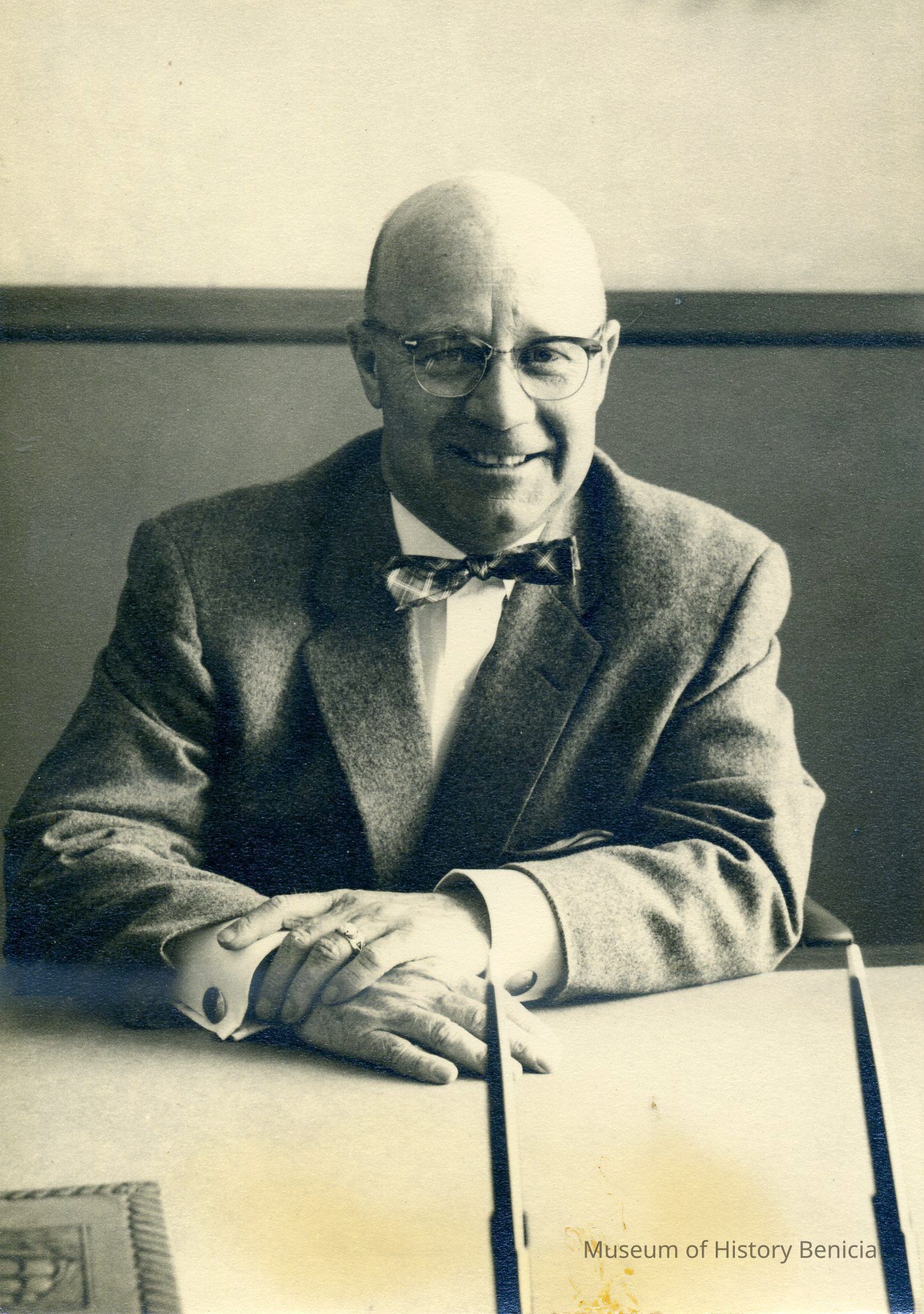 B/W Photograph of an unidentified man seated at a desk