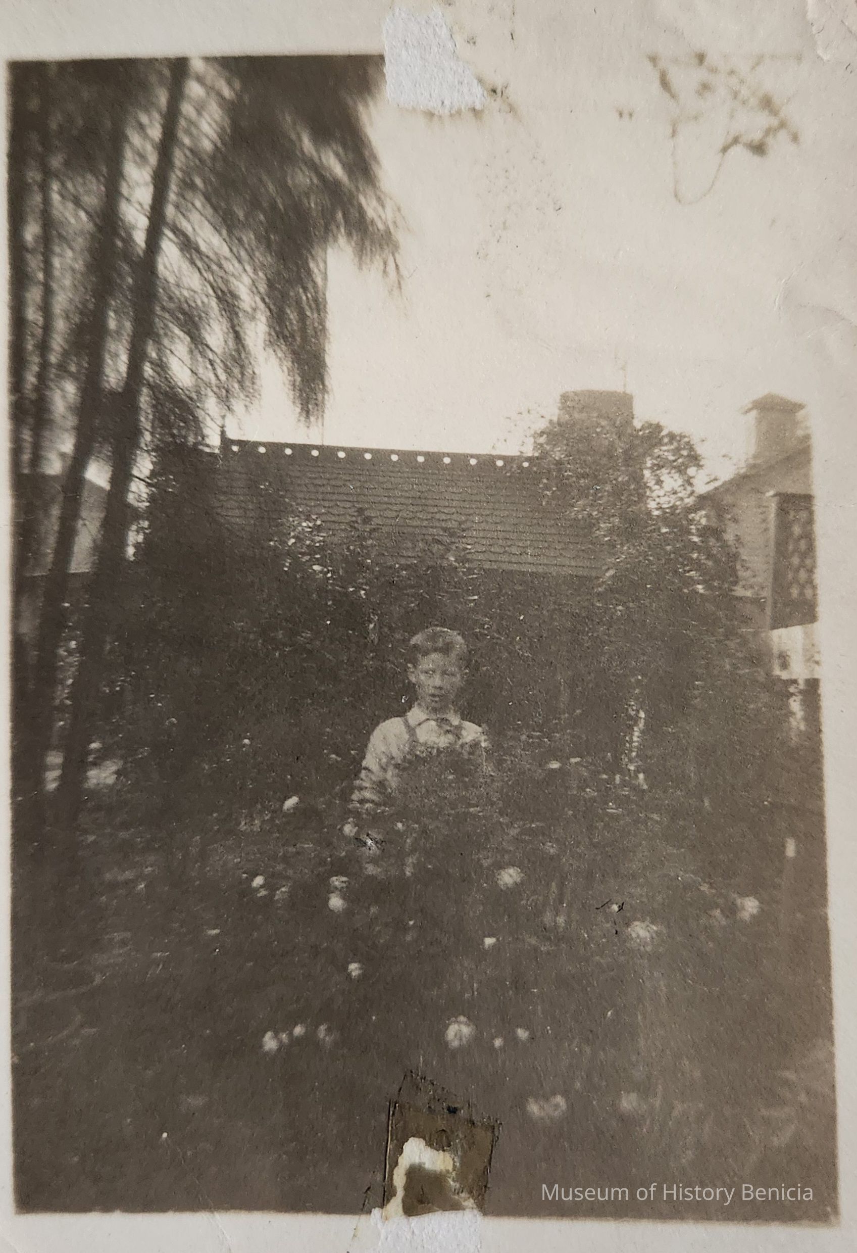 B/W Photograph of a boy in a garden