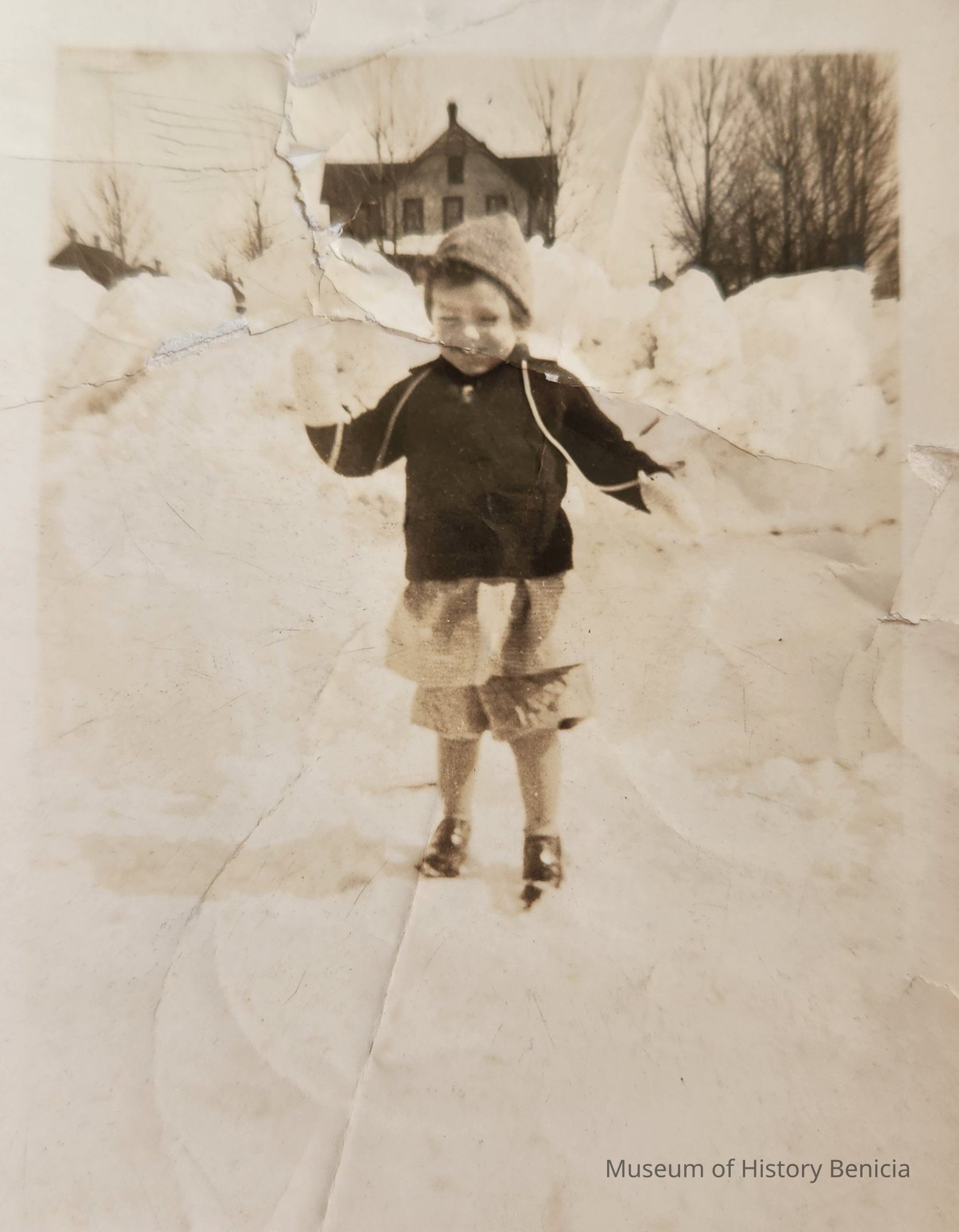 B/W Photograph of an unidentified child standing in the snow.