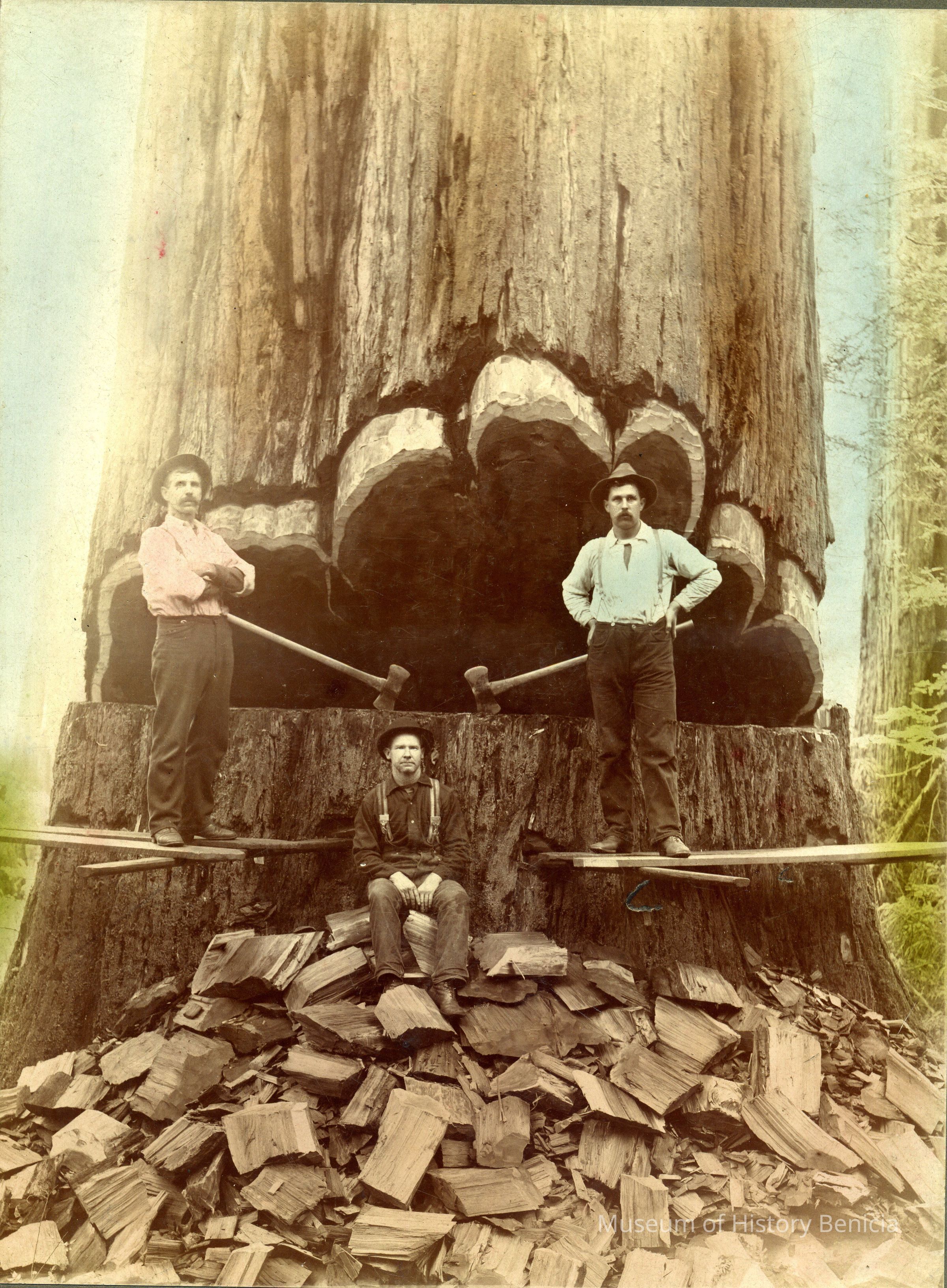 Photo purchased by Frank H Wassmann who worked in the forest of Del Norte County when a youth. This occupation was short-lived. Frank returned to Benicia and started his own plumbing business.Collection