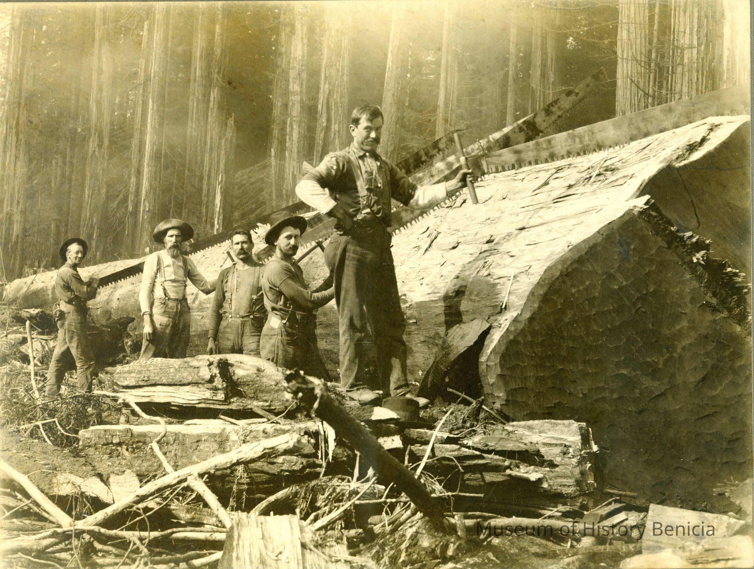 Photo purchased by Frank H Wassmann who worked in the forest of Del Norte County when a youth. This occupation was short-lived. Frank returned to Benicia and started his own plumbing business.Collection