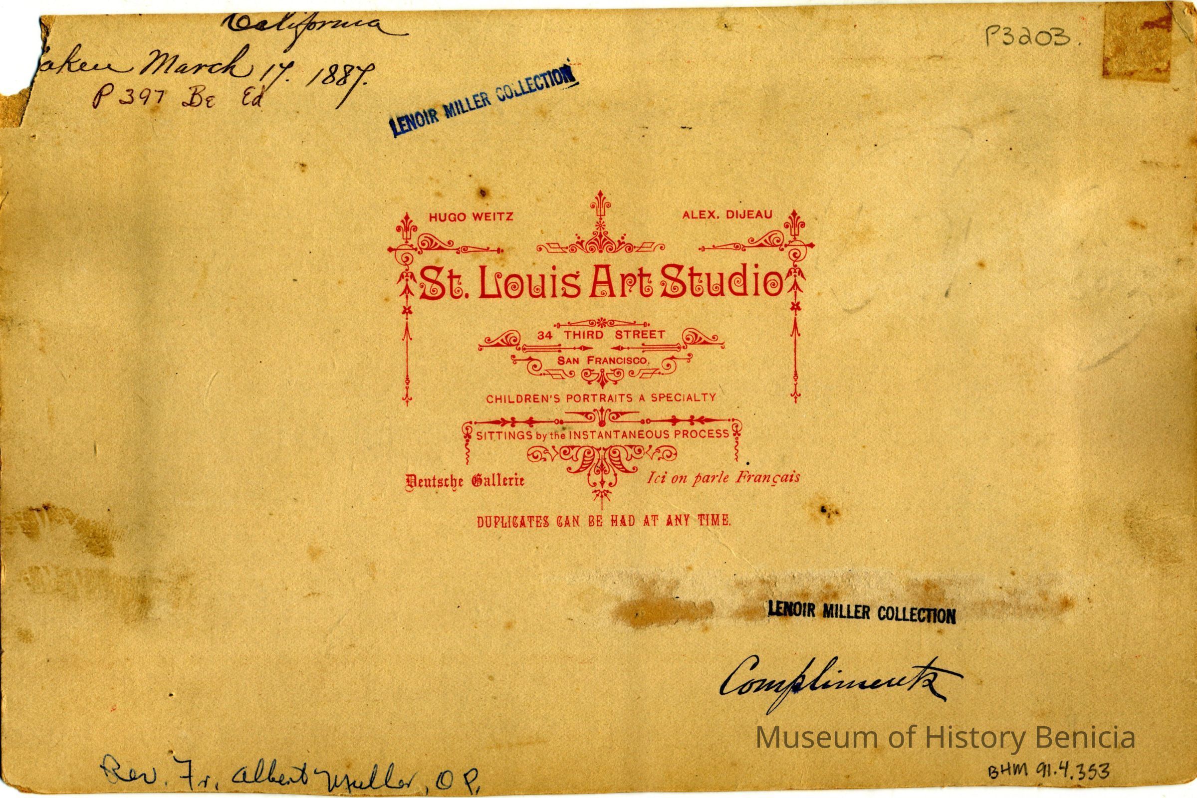 the name Rev. Fr. Albert Muller, O.P. is written on the back (undoubtedly the person who gave the photograph to Mrs. Miller)Collection