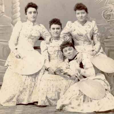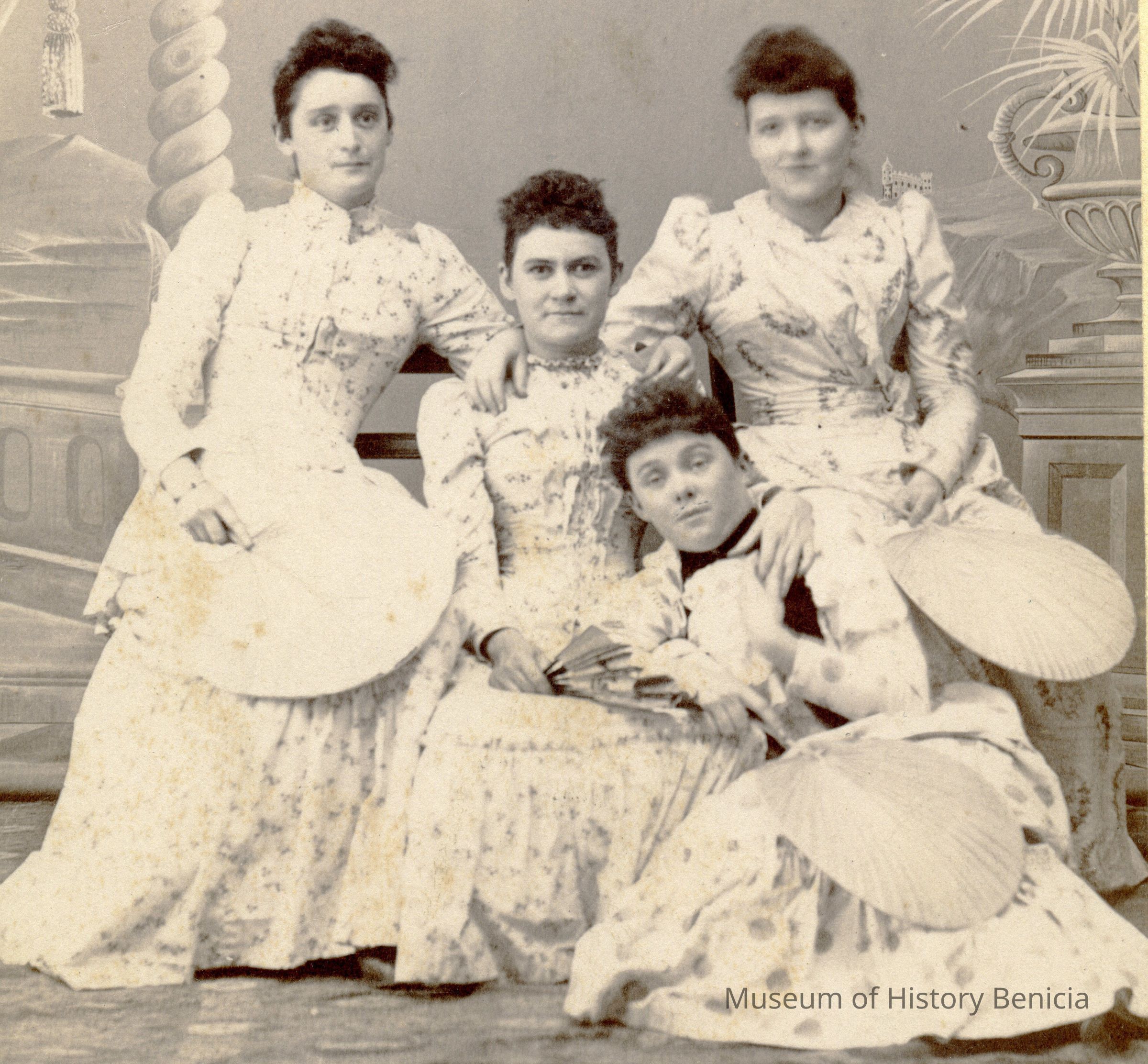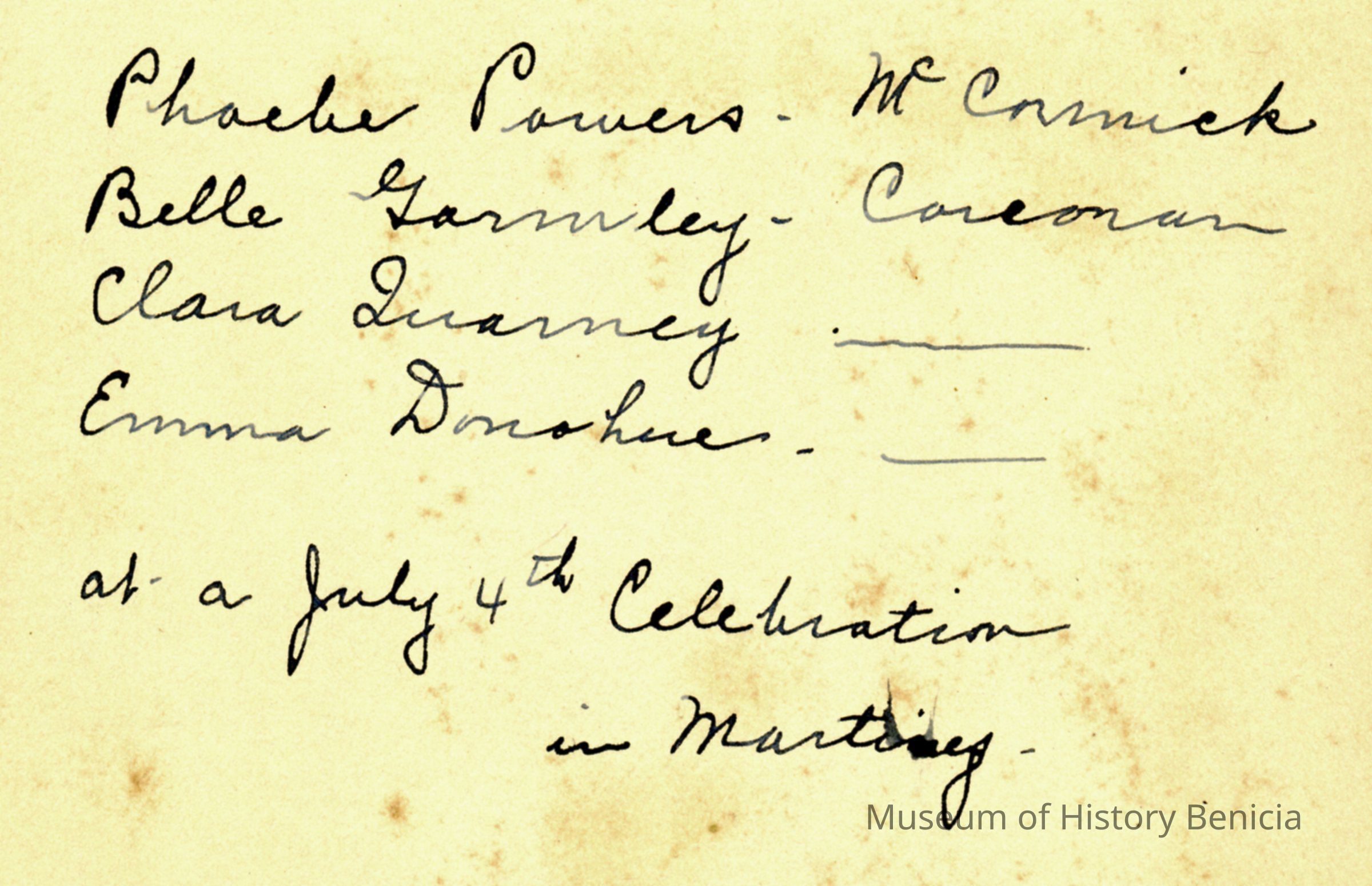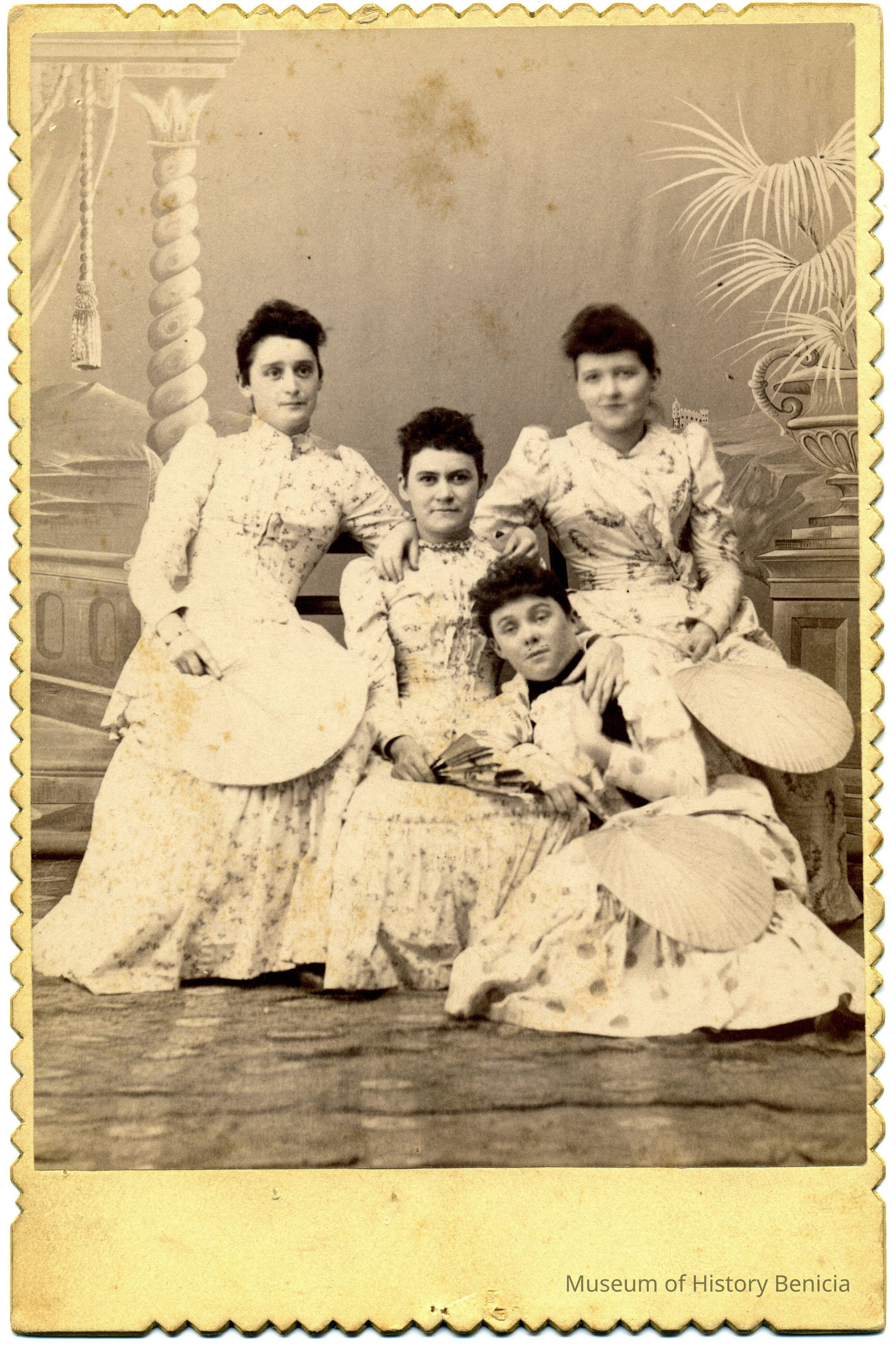 This is a studio photograph of four women taken in Martinez at a 4th of July celebration. The four women are identified as: