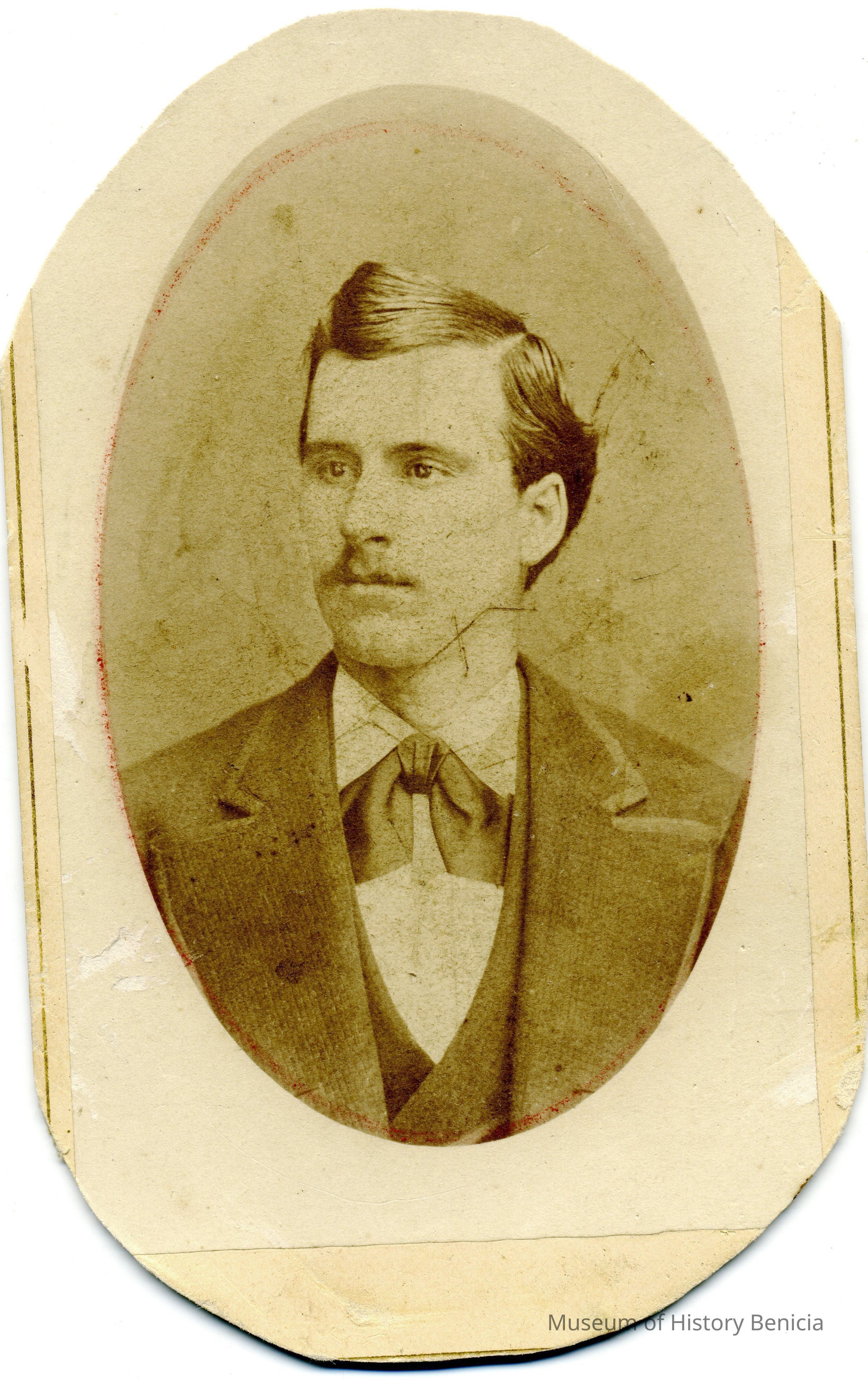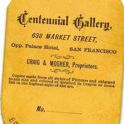 This is a portrait of a young man in the late 1800s or early 1900s. It is a cabinet card that has been cut down to 4" x 2.5". This may have been to fit into an album. The photo was taken by Centennial Gallery in San Francisco, CA.Collection