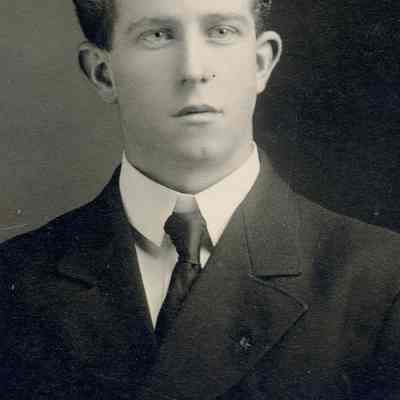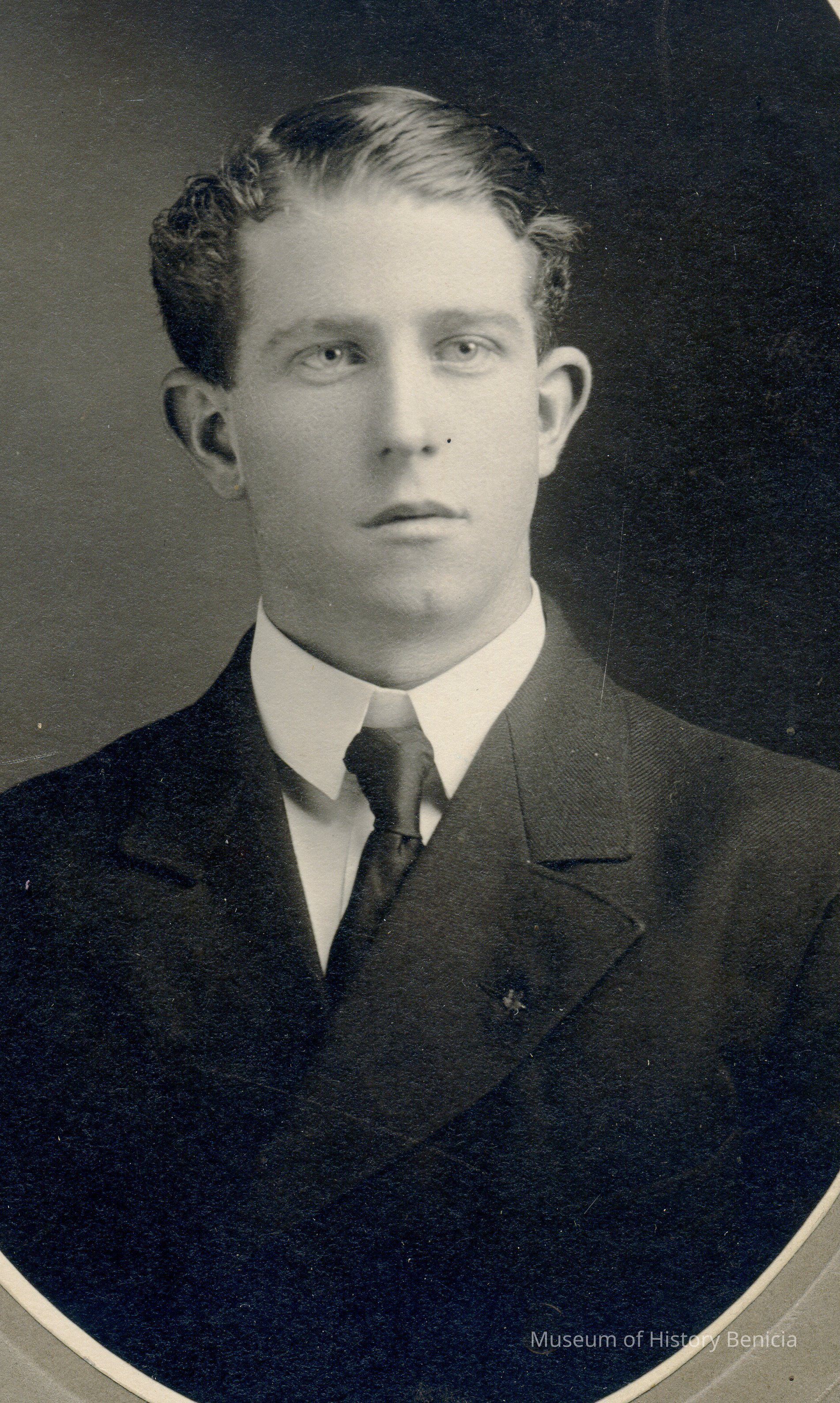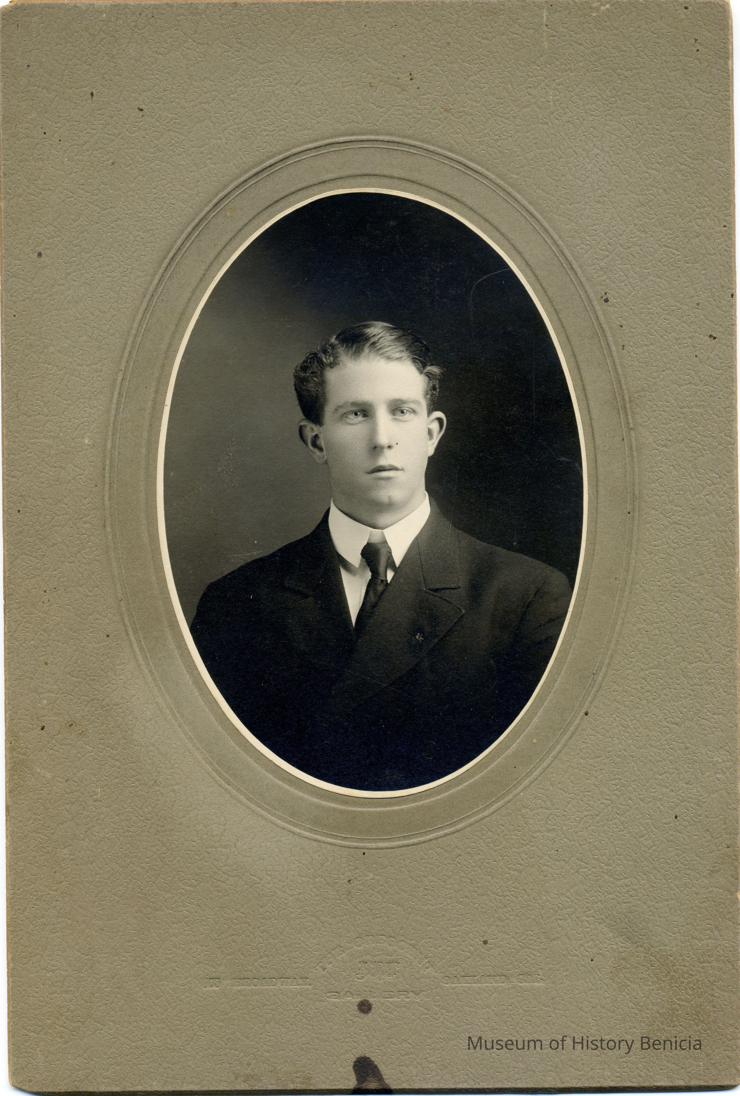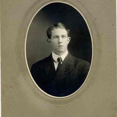 B/W portrait of a man in a cabinet card with oval cutout.