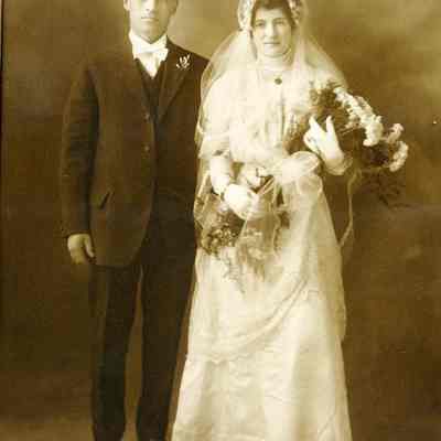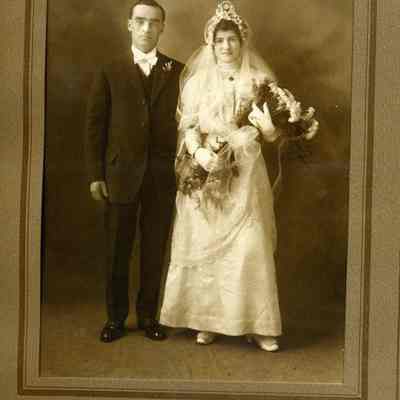 This is a photo of Joe Dana and his wife. It is a folder type photo and may be their wedding photo.