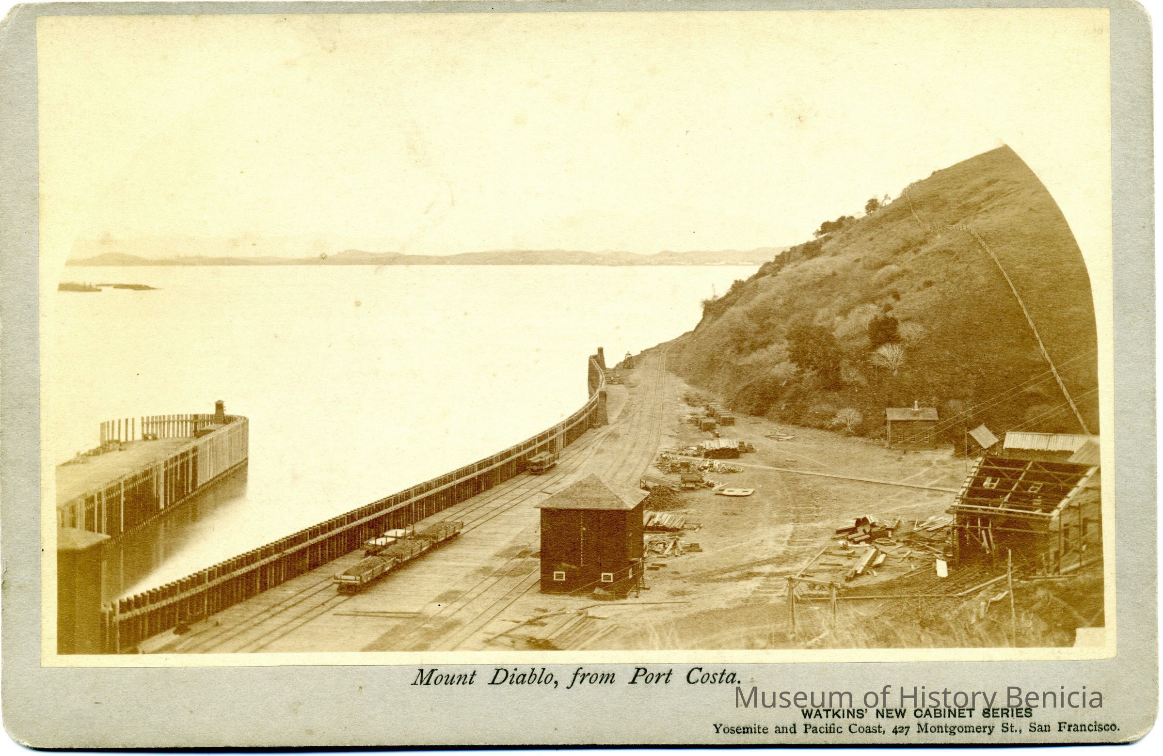 This is a photograph of Mount Diablo from Port Costa. It was taken by Carleton Watkins and is part of his "Watkn's New Cabinet Series". Yosemite and Pacific Coast.Collection