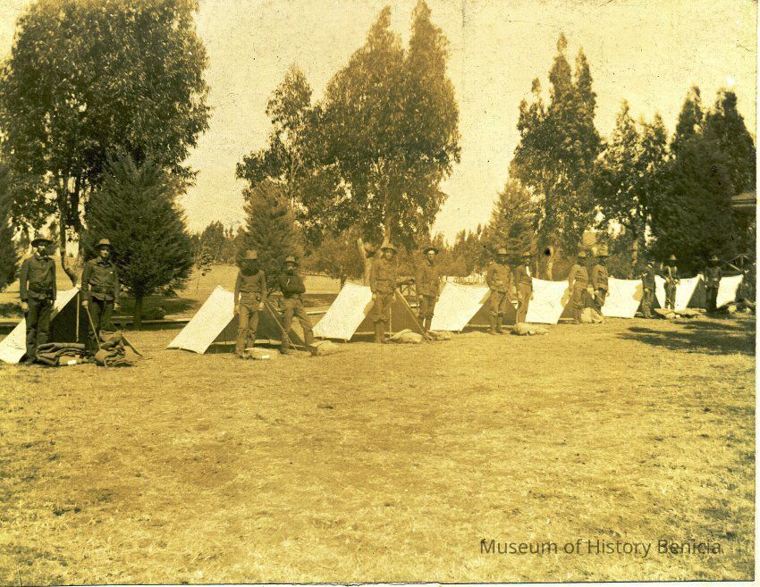 This photo shows soldiers in their tent camp at the Benicia Arsenal.Collection