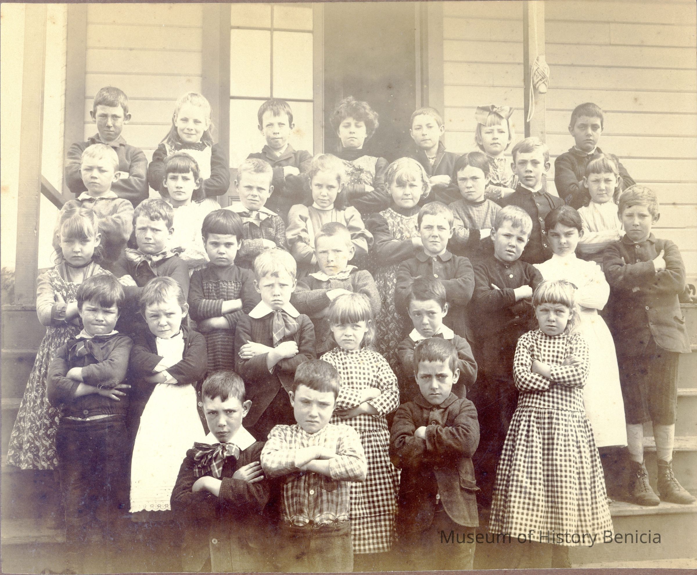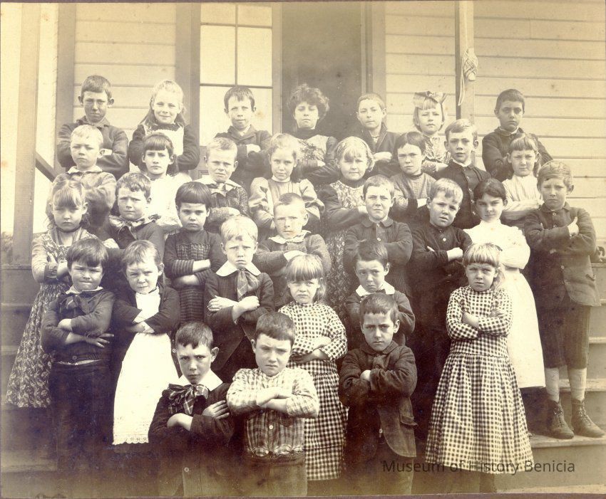 Photo of a group of school age children. They all have their arms crossed and most look very serious.