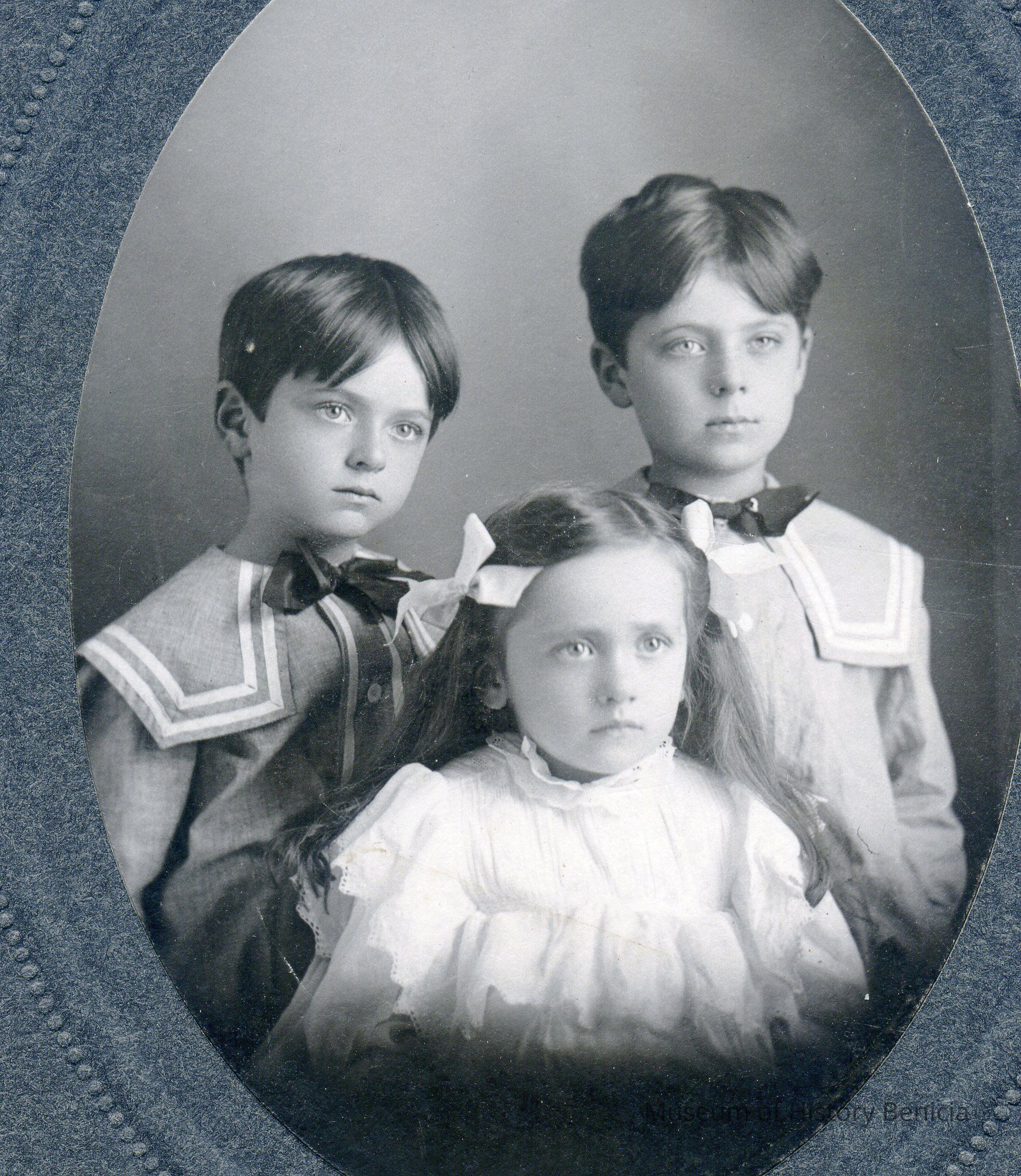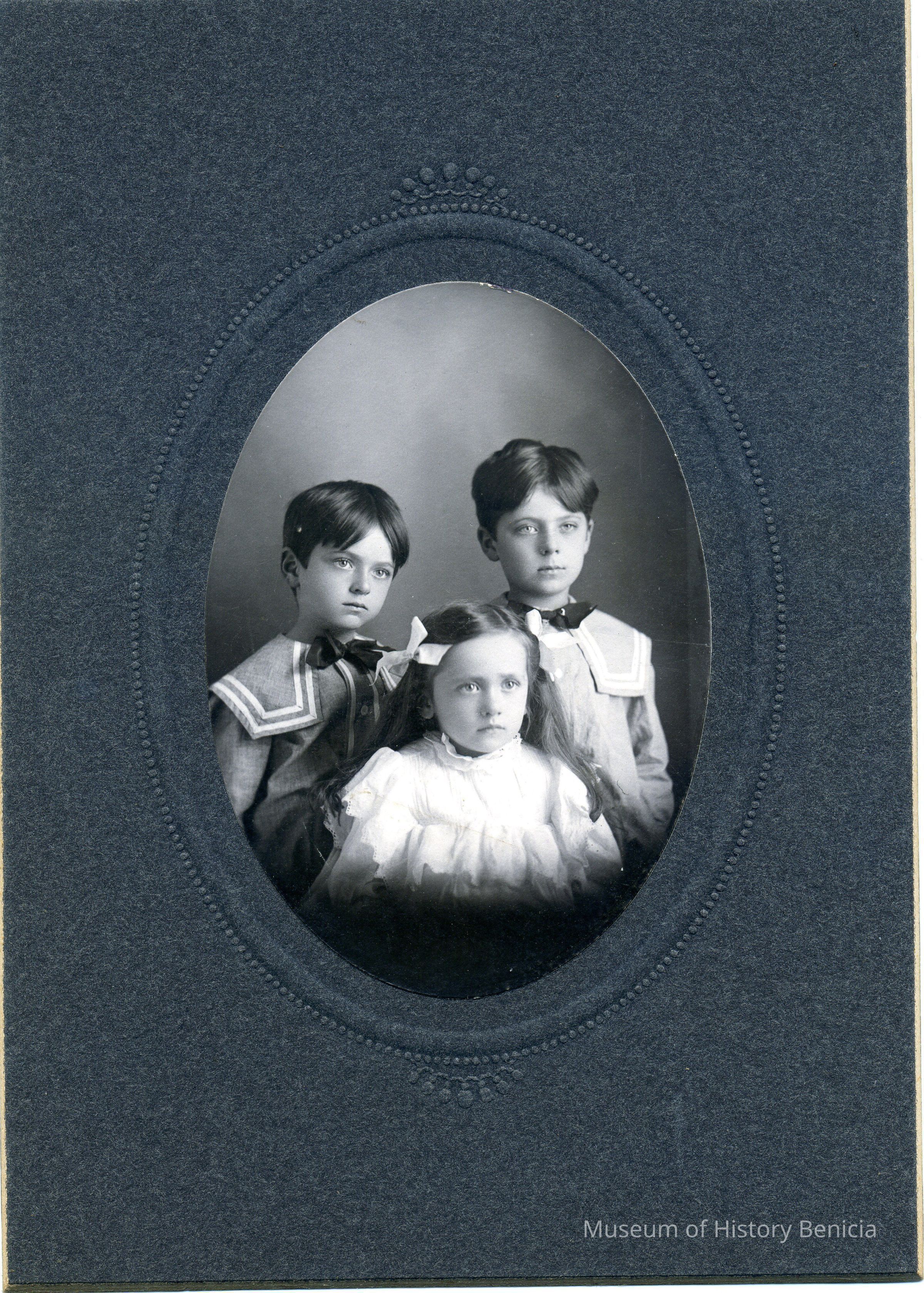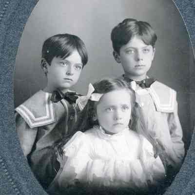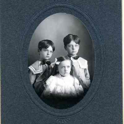 This is a photo from the album described below. It is a photo of three small children.