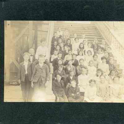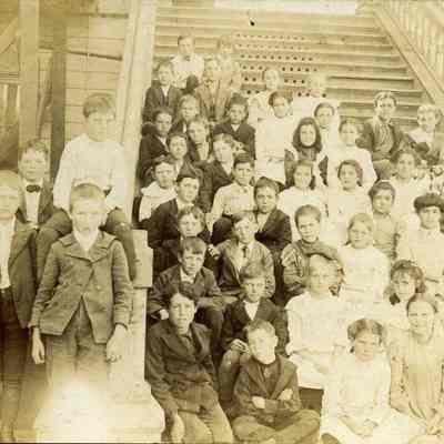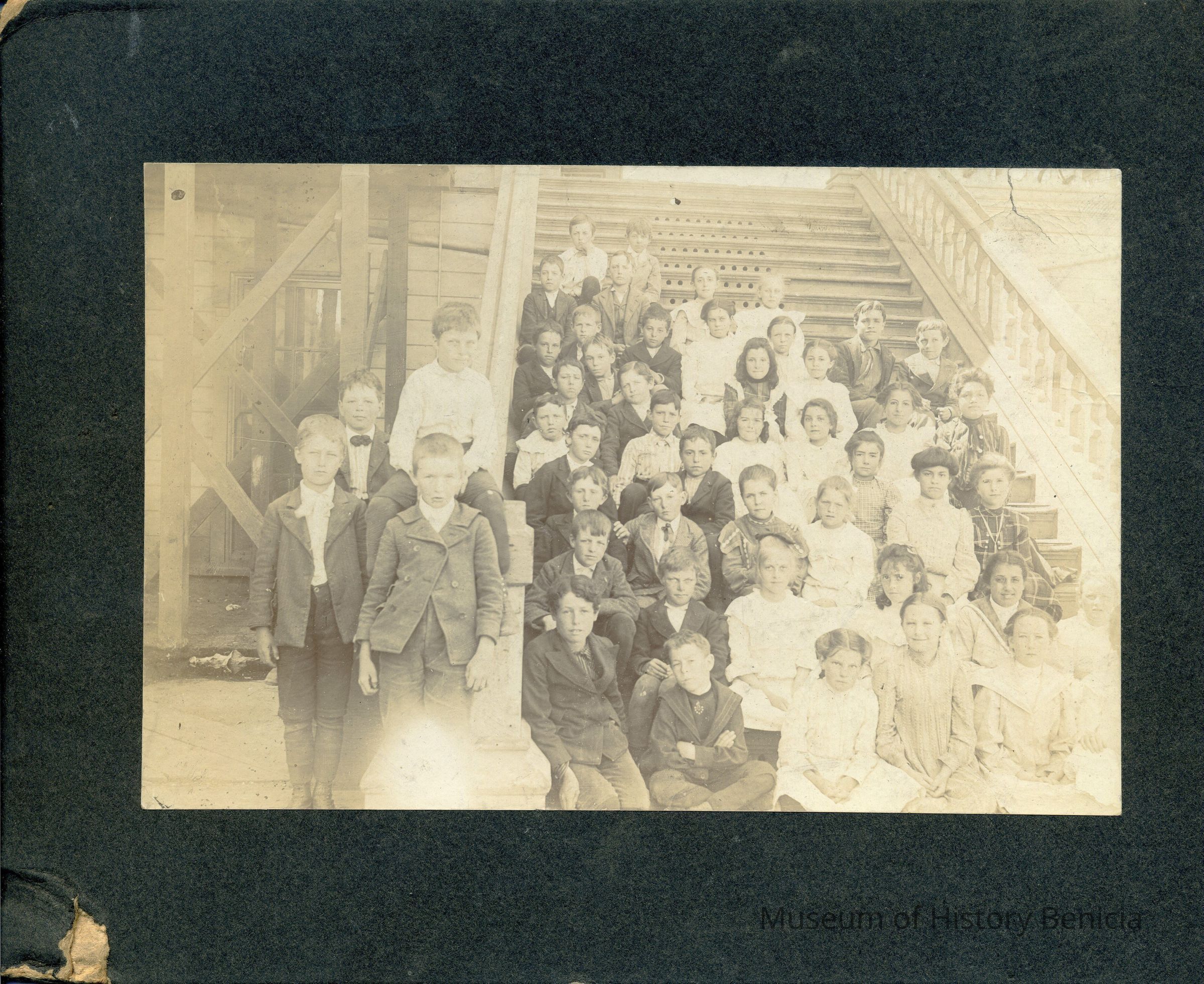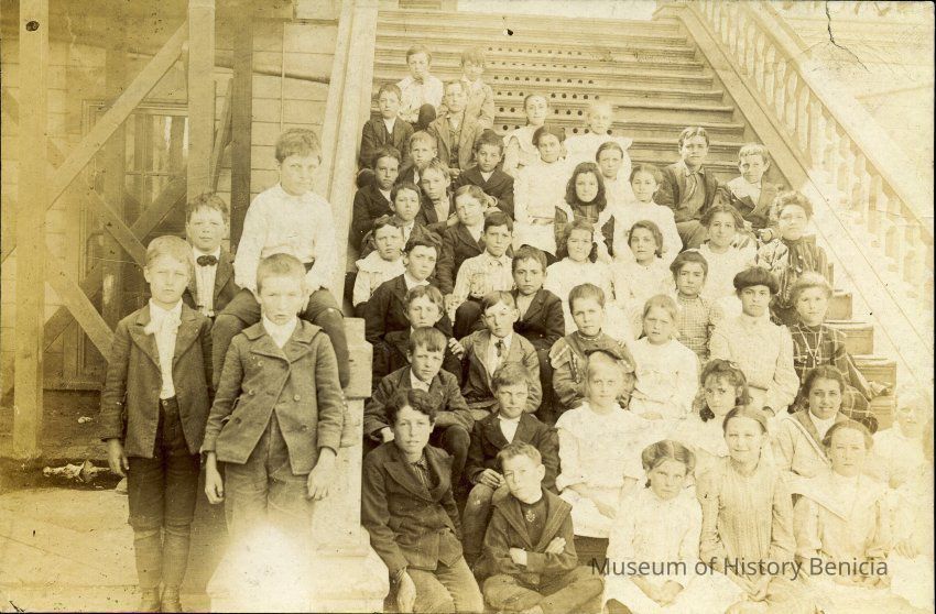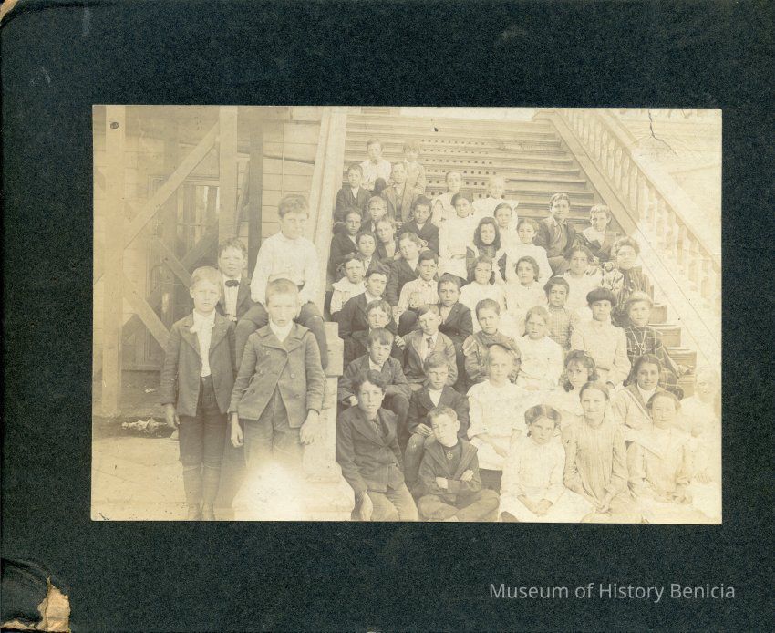 Benicia school class photo. It is taken on the steps of the Benicia Grammar school.