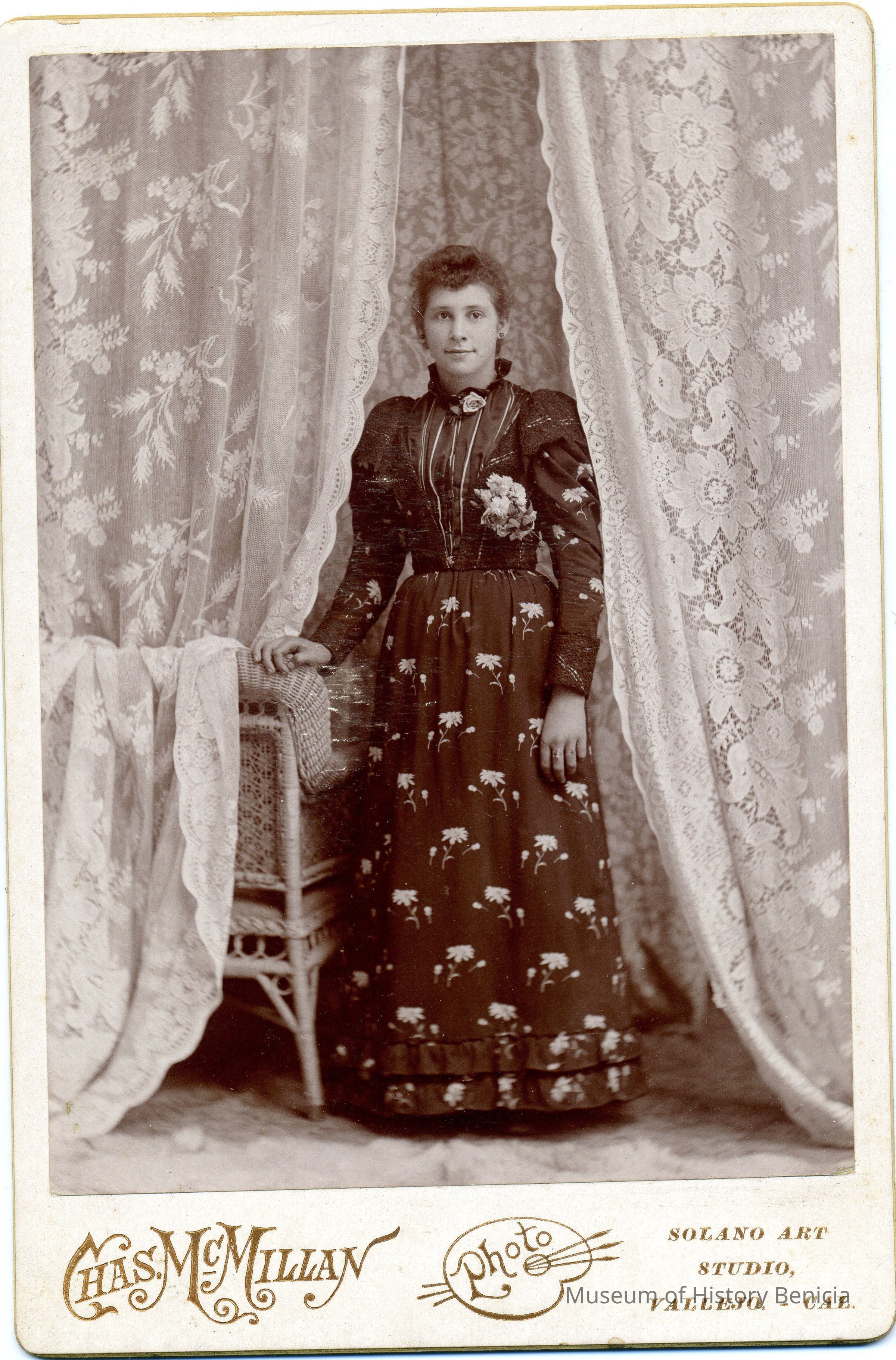 This is a photo from the album described below. It is a photo of a woman in a print dress. The photo was taken in Vallejo, CA.