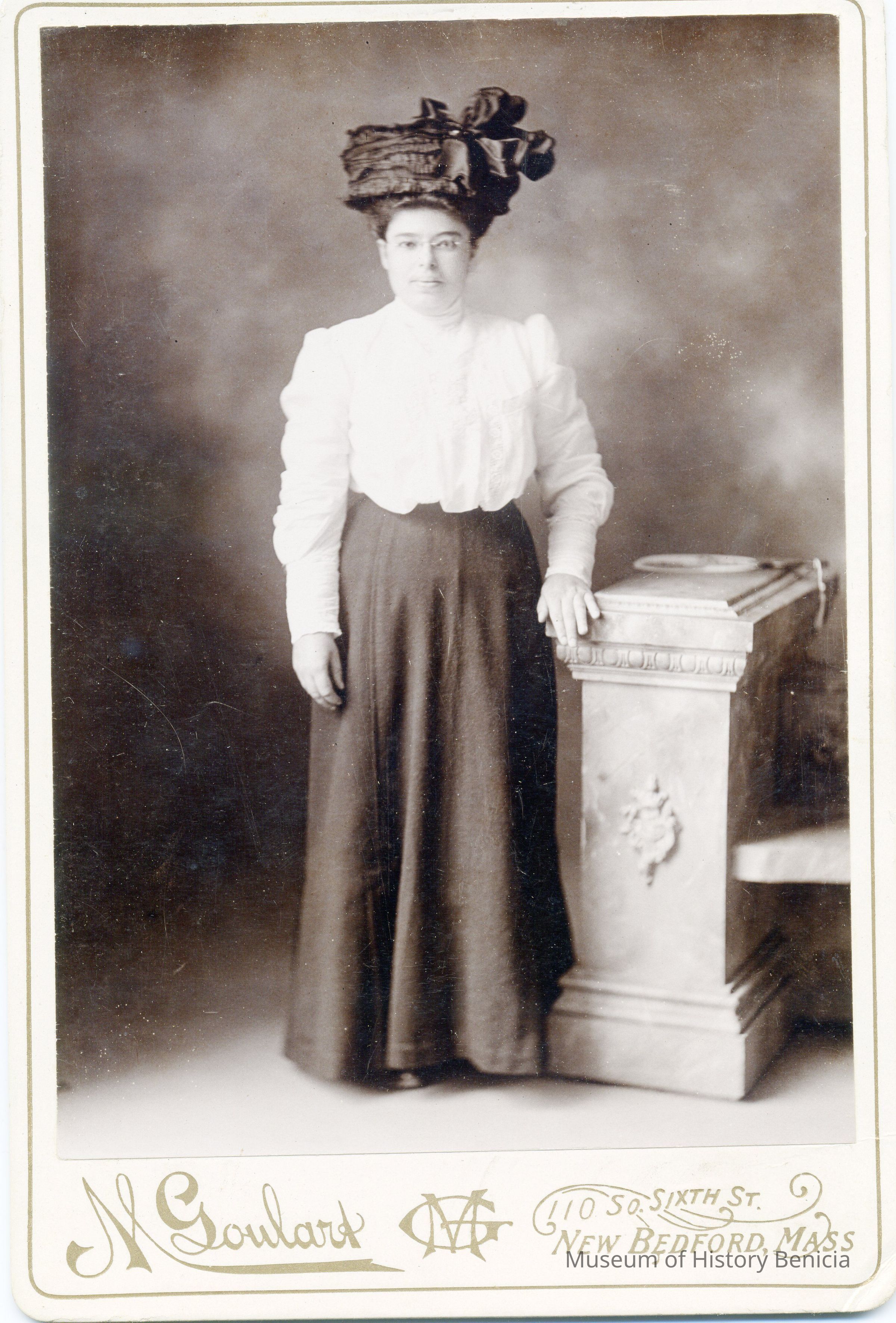 This is a photo from the album described below. It is a photo of a woman with a big hat. The photo was taken in New Bedford, MA.
