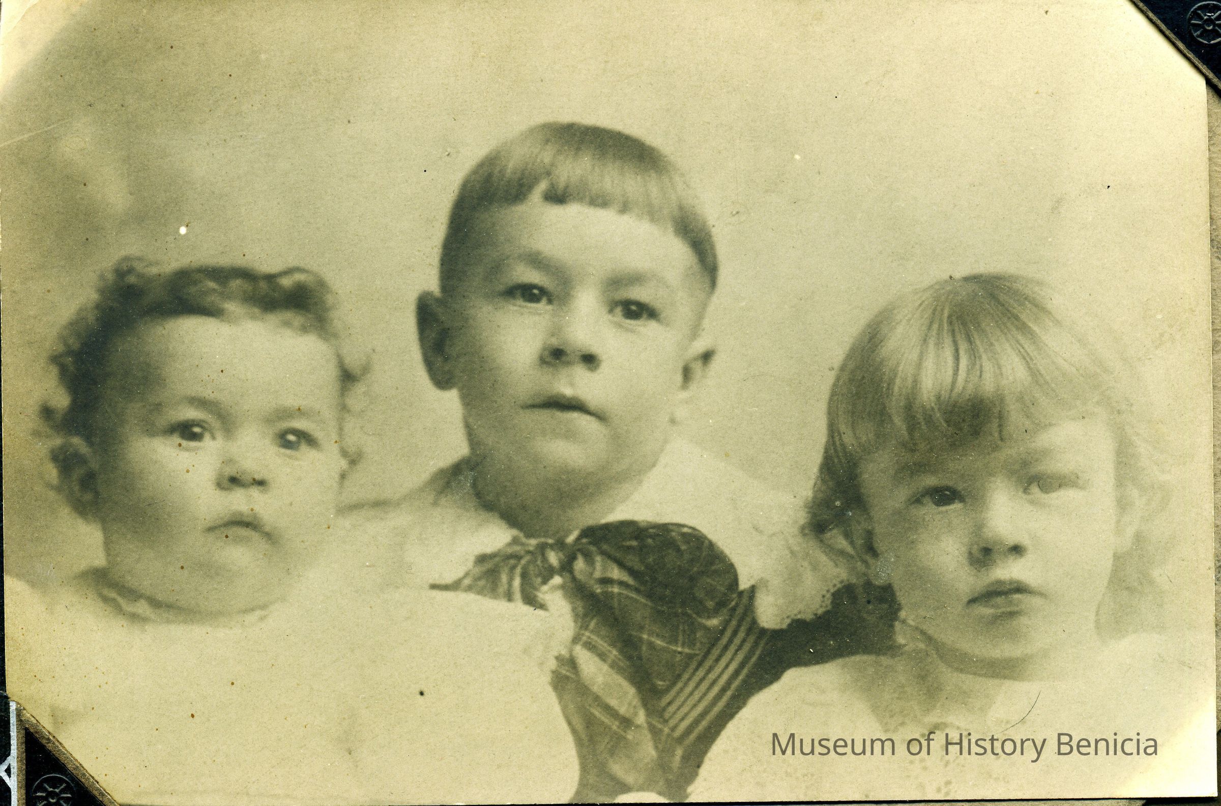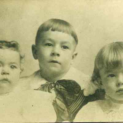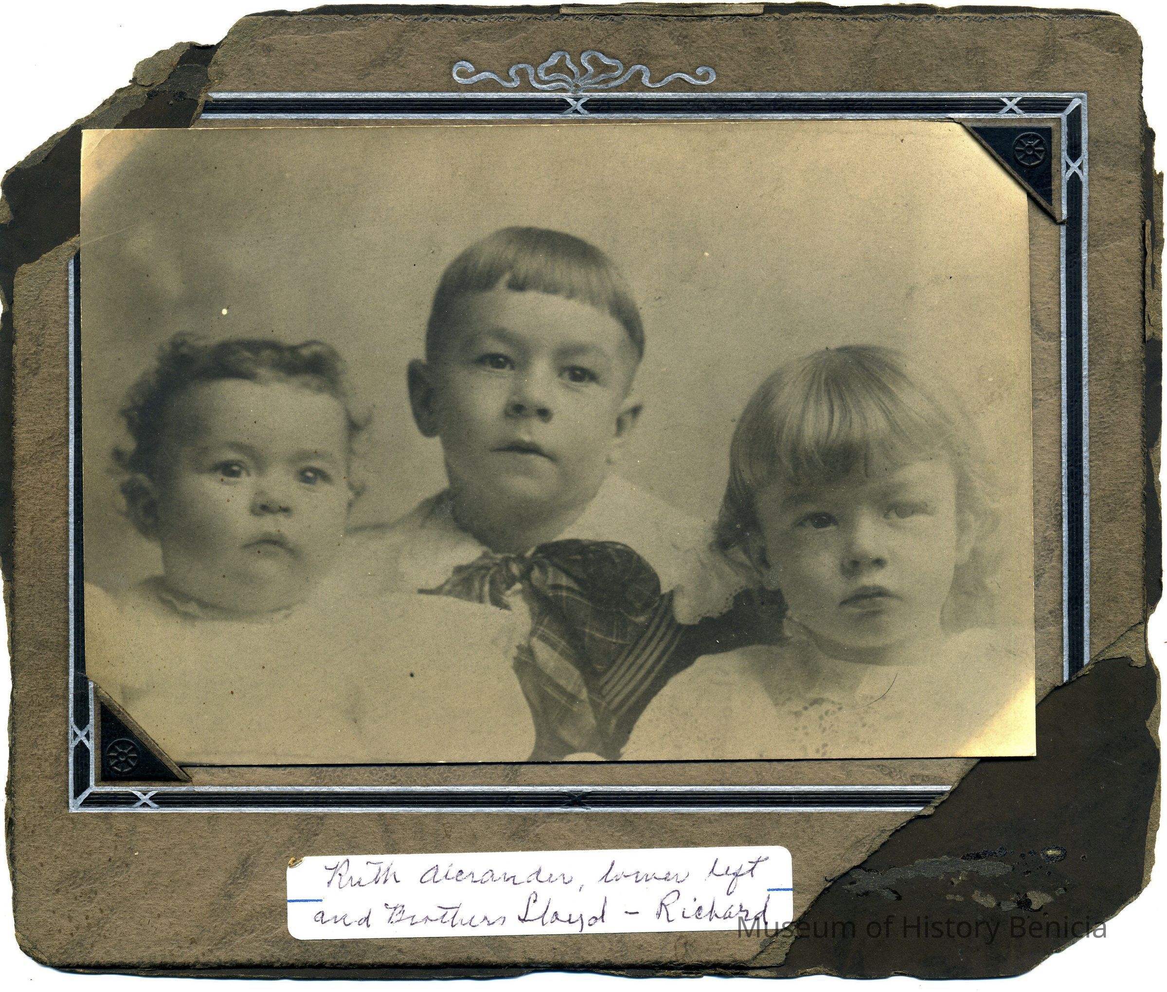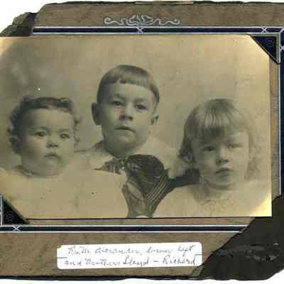 This is a photograph of Ruth Alexander and her brothers Lloyd and Richard. Ruth looks to be about 1 to 2 years old. It was in a folding cardboard holder which has been cut down.Collection