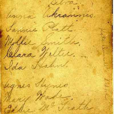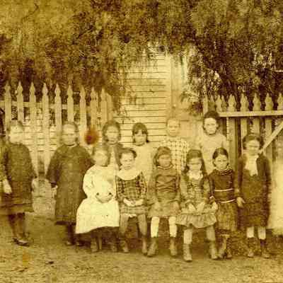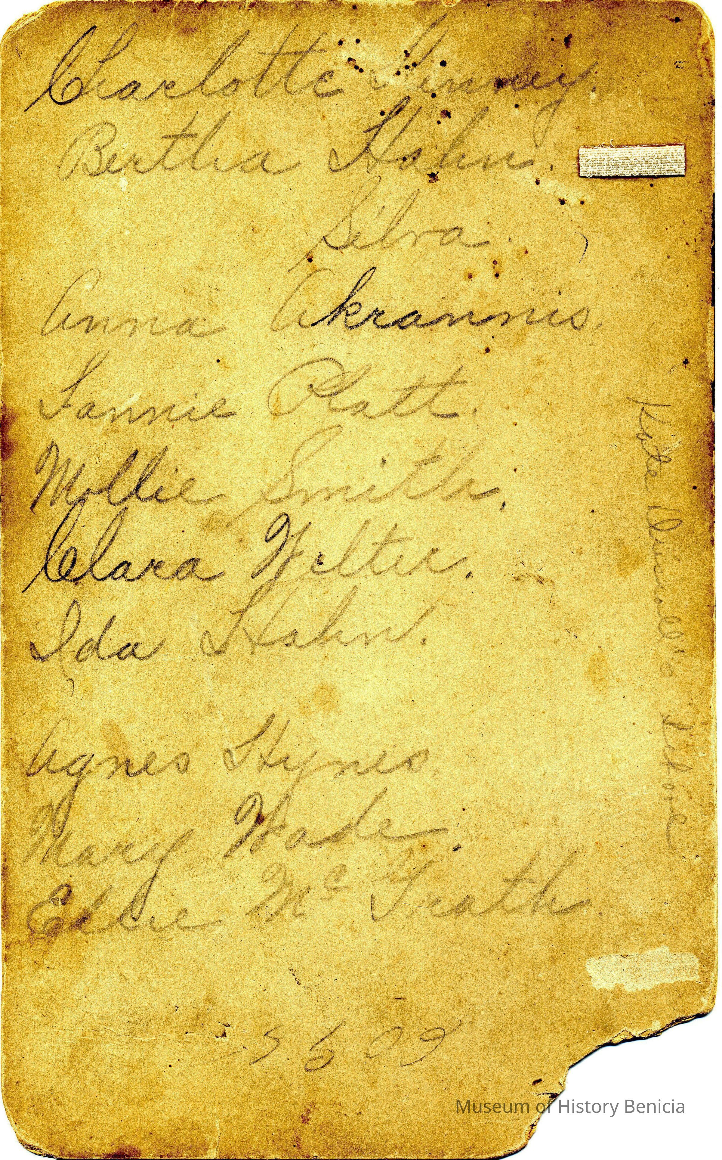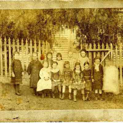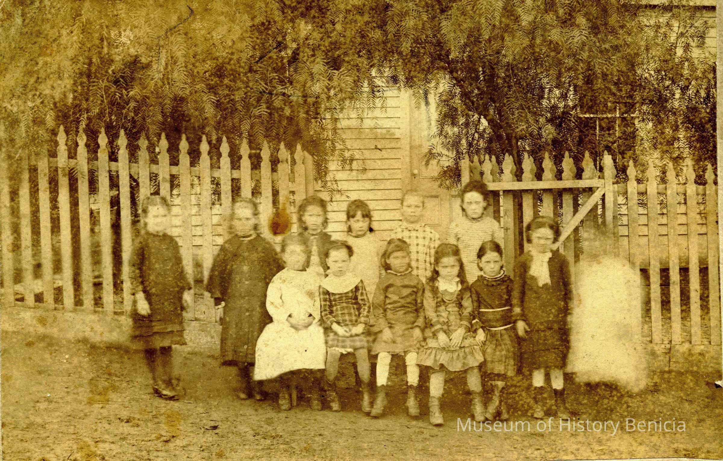 Photo of Miss Kate Driscoll's School in a private home at 560 East "H" st, Benicia. It existed before 1900. In the 1920 census she is shown living at 420 East "H" st in Benicia with her niece, Ellen Driscoll (born 1885) who is a teacher. (Another copy of ths photo says her home school was at 560 East "H" street.) Kate Driscoll was born 01/1846 in Massachutes and died 08/17/1926. She is buried in St. Dominic's cemetery in Benicia.
