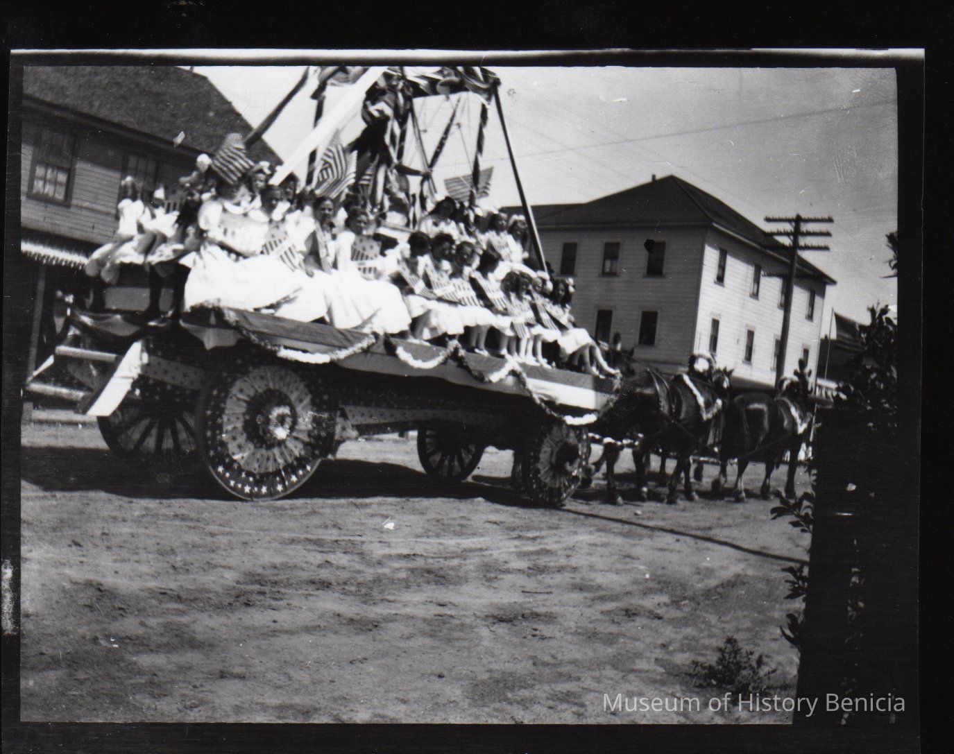 Fourth of July parade float in front of what could be the Union Hotel.